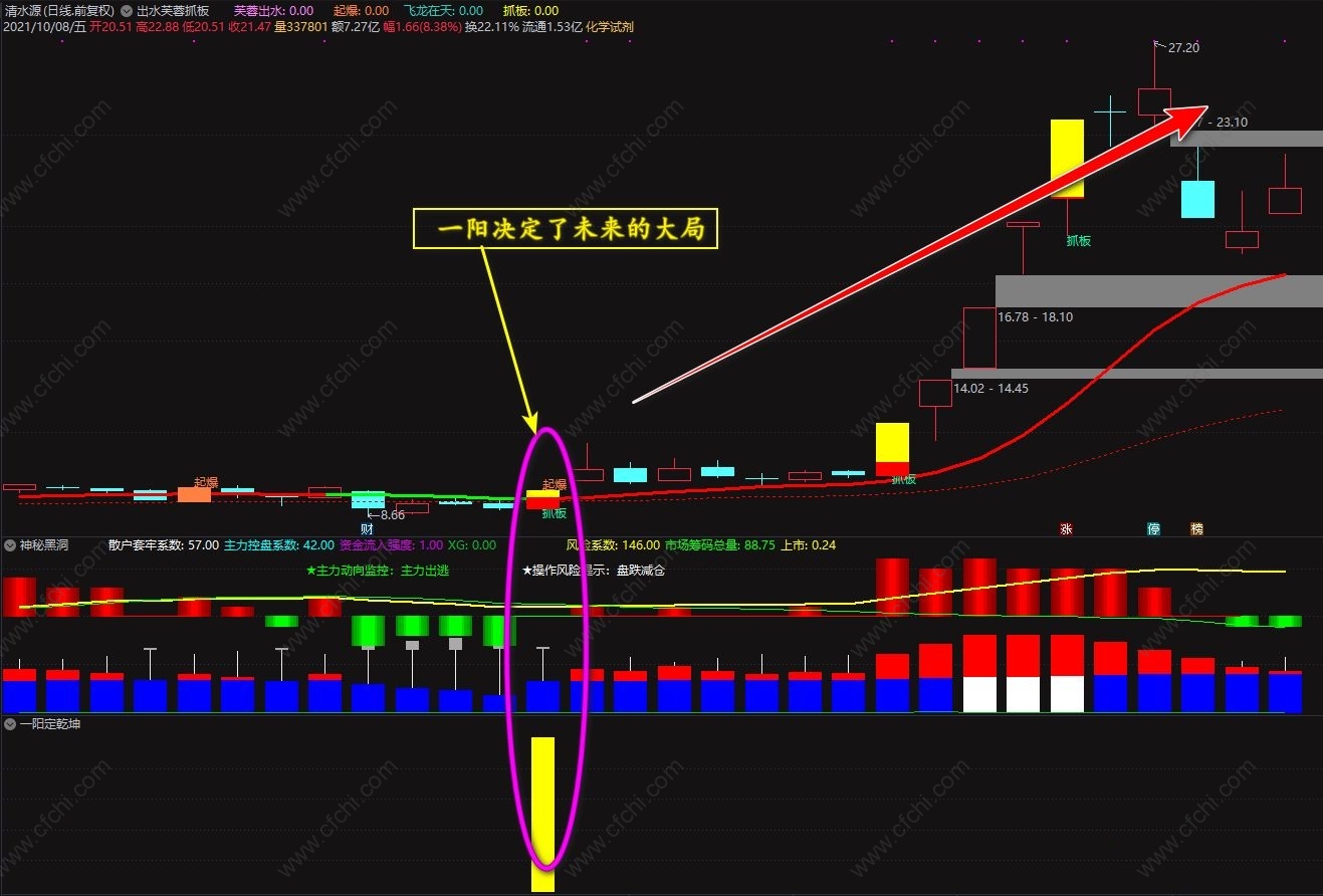 (【一阳定乾坤】通达信一阳定乾坤副图选股指标,配合芙蓉出水+神秘黑洞效果更佳!源码分享)