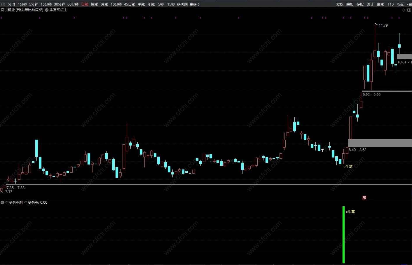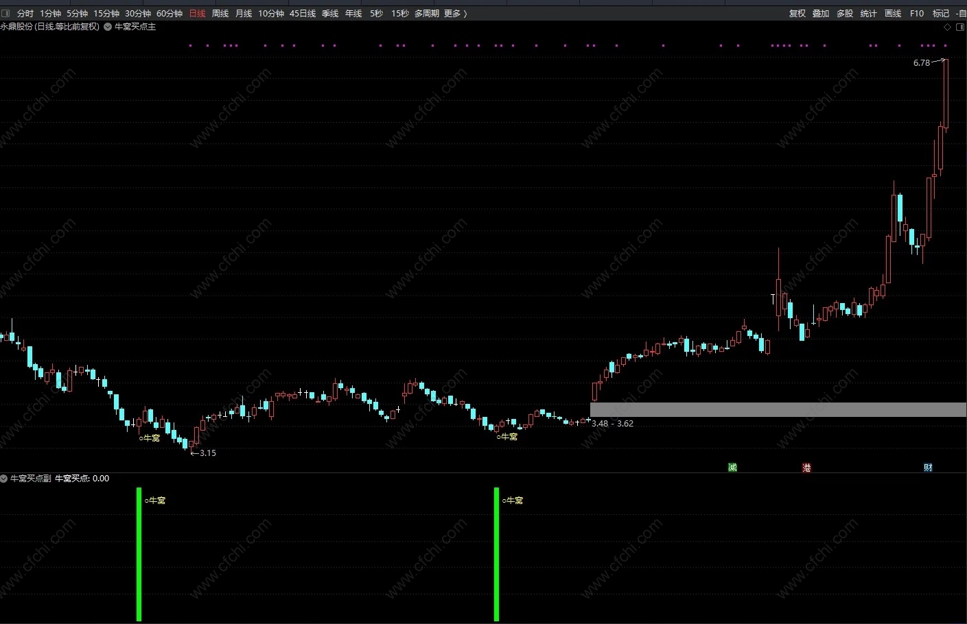 (通达信【牛窝买点】主副图选股指标,阶段低点相当不错,源码分享)