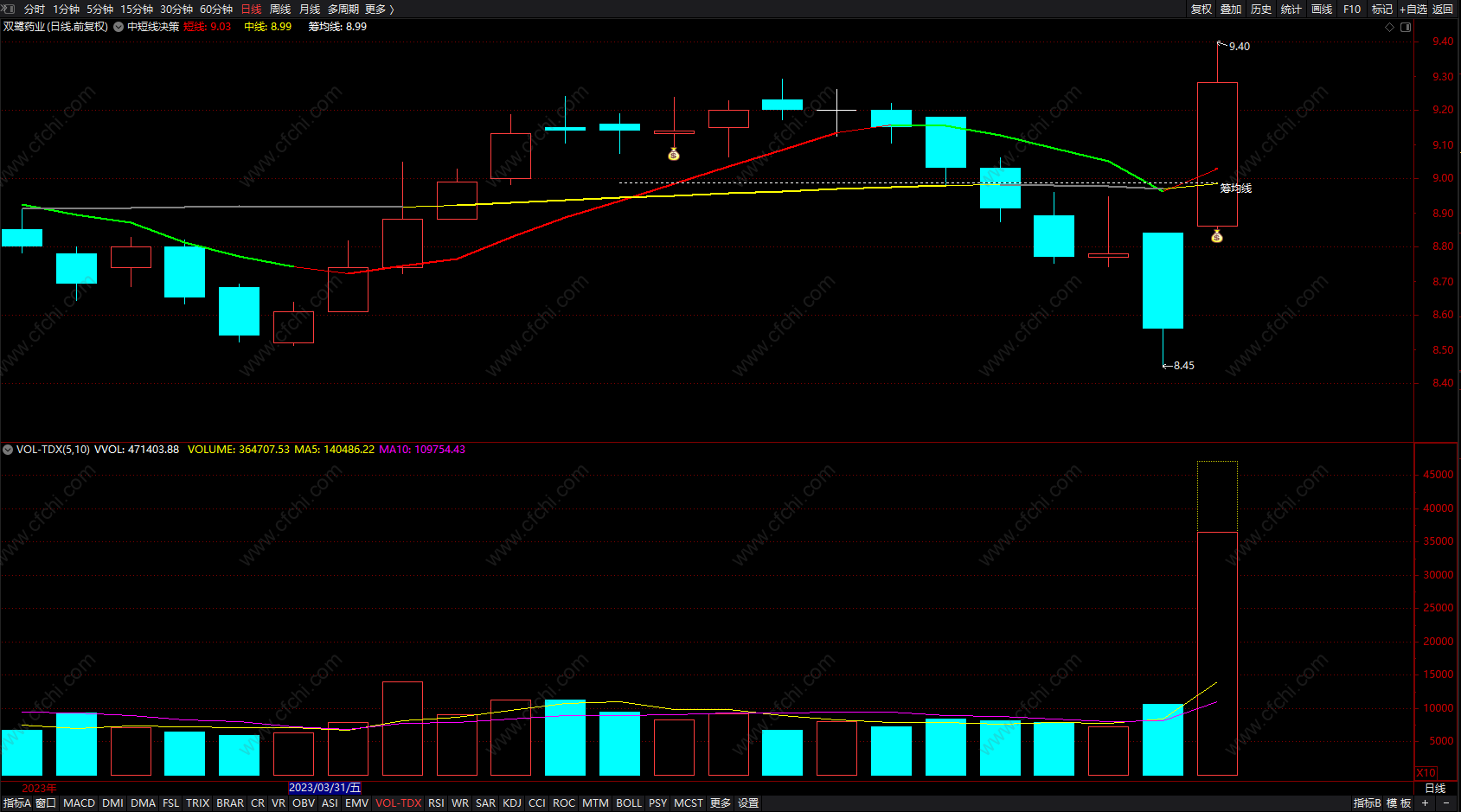 (通达信短线暴涨牛股指标 中线决策和短线决策提示主图 源码)
