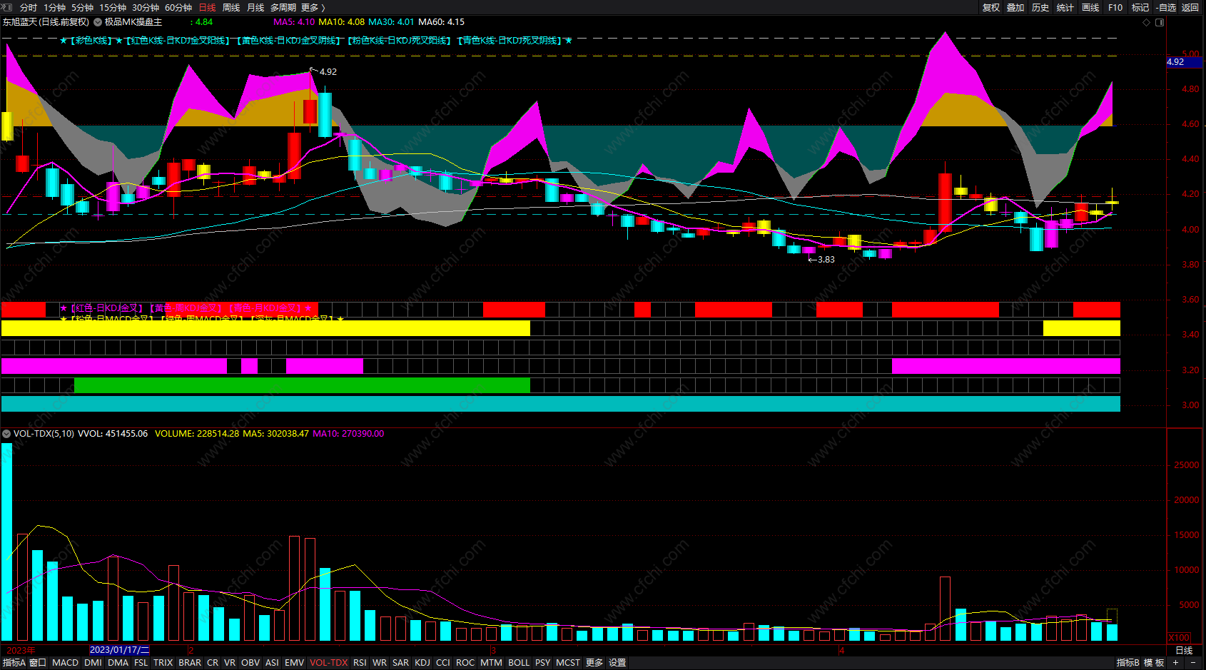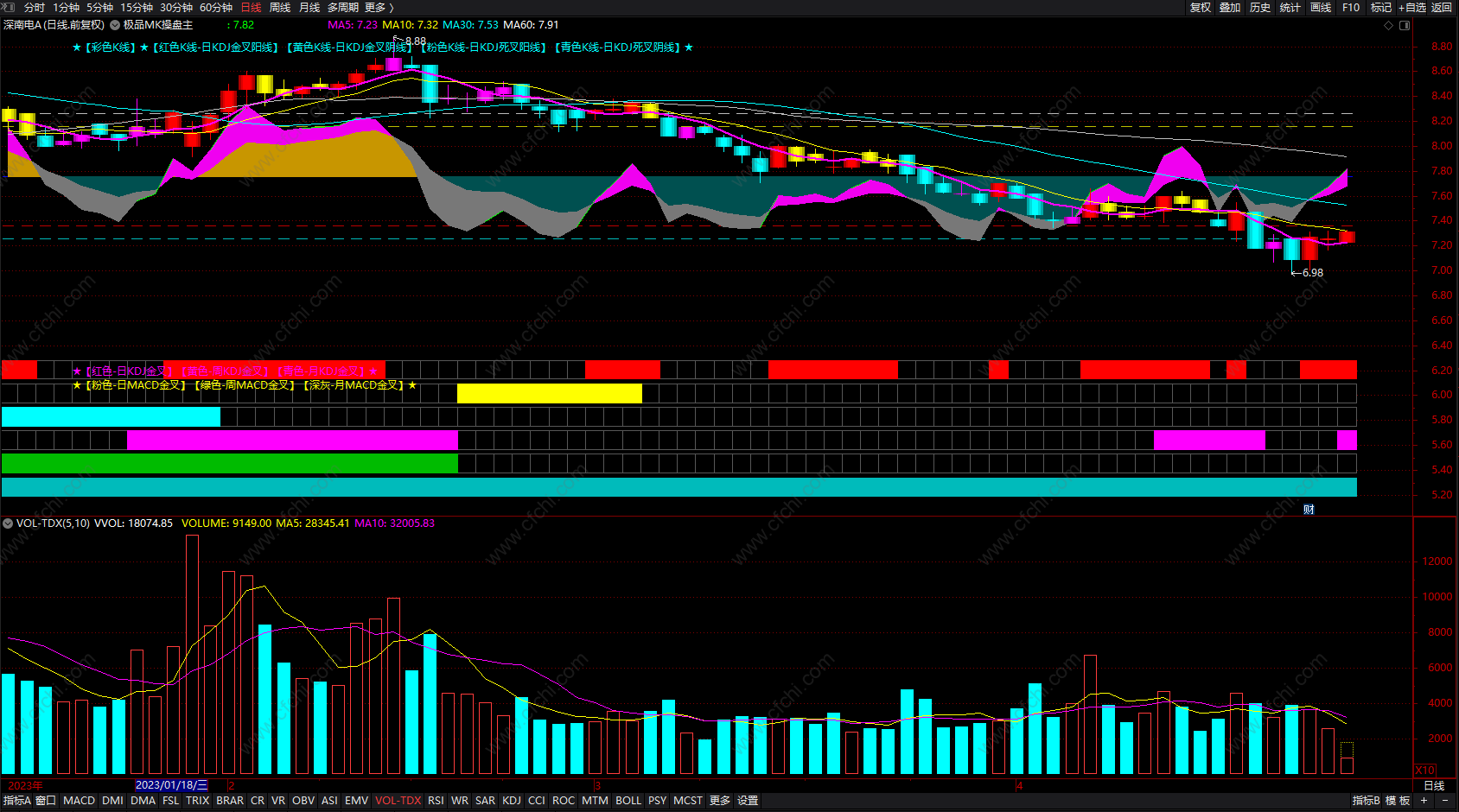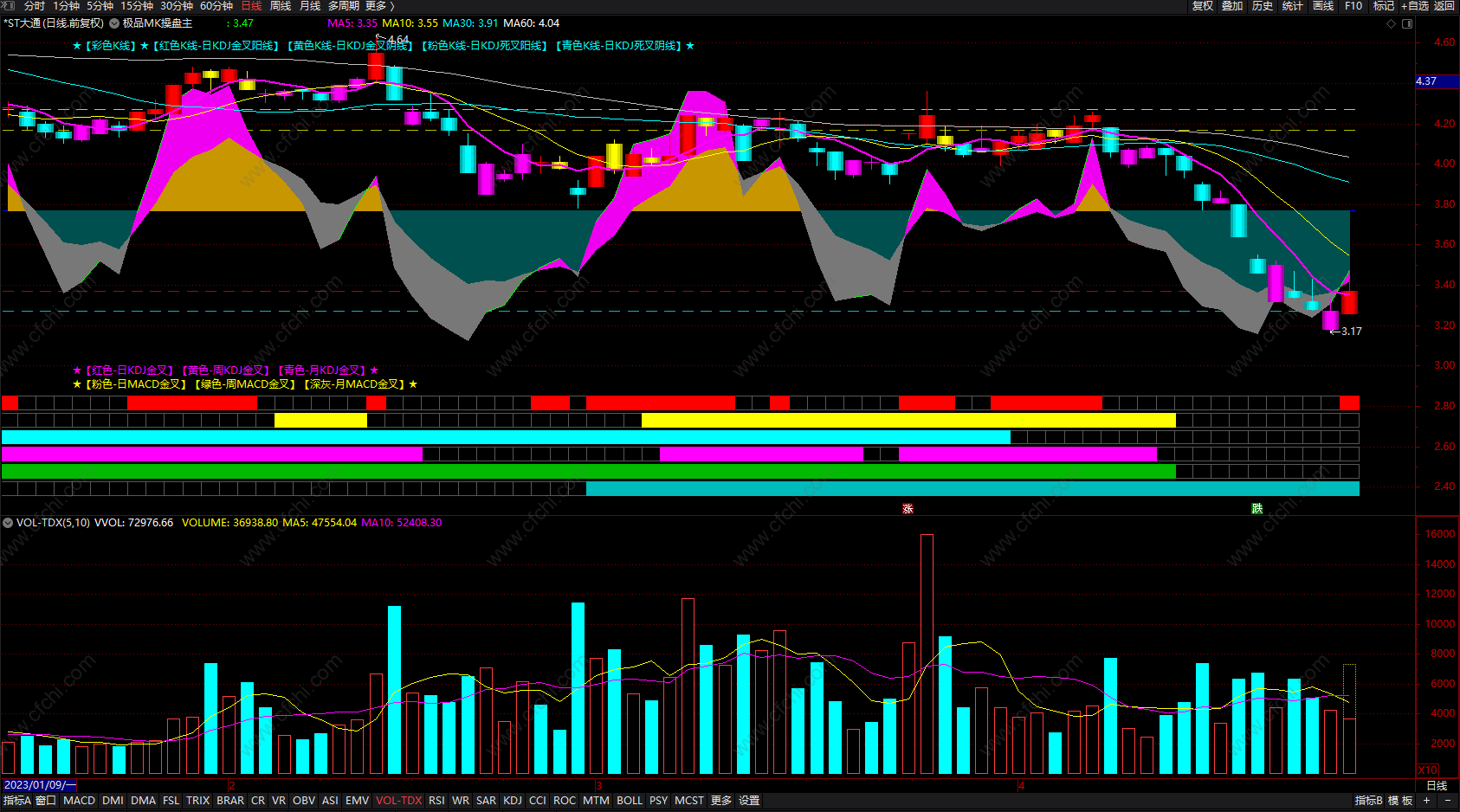 【粉色K线-日KDJ死叉阳线】【青色K线-日KDJ死叉阴线】★'),COLORFFFF00;