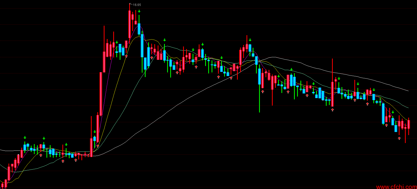 指标:MA5:MA(C,5),COLORFF00FF,LINETHICK1;
