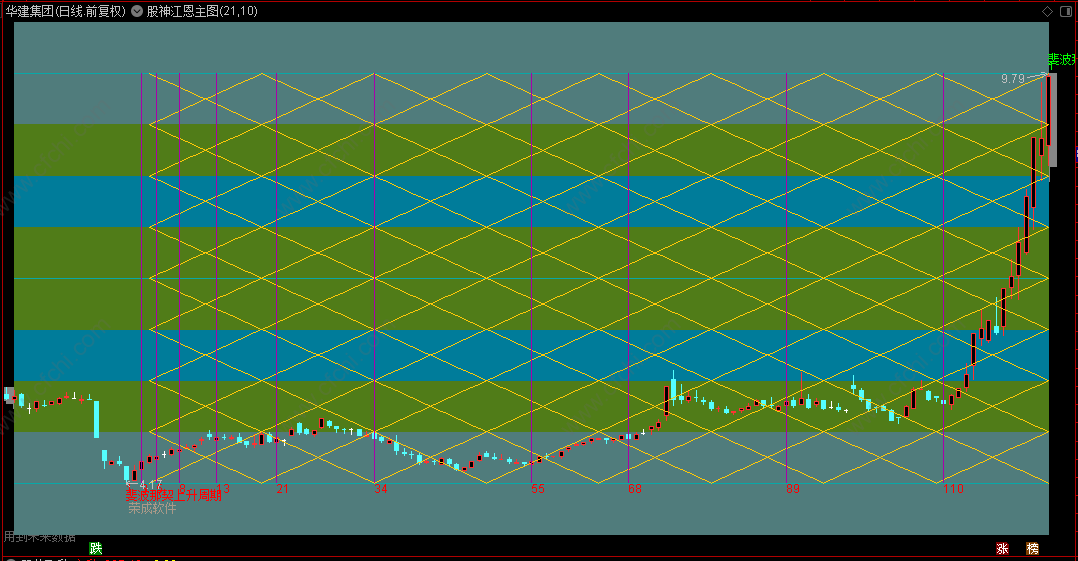 (通达信【股神江恩主图】指标,研究趋势,上升震荡一目了然,进阶股神的工具!源码分享)