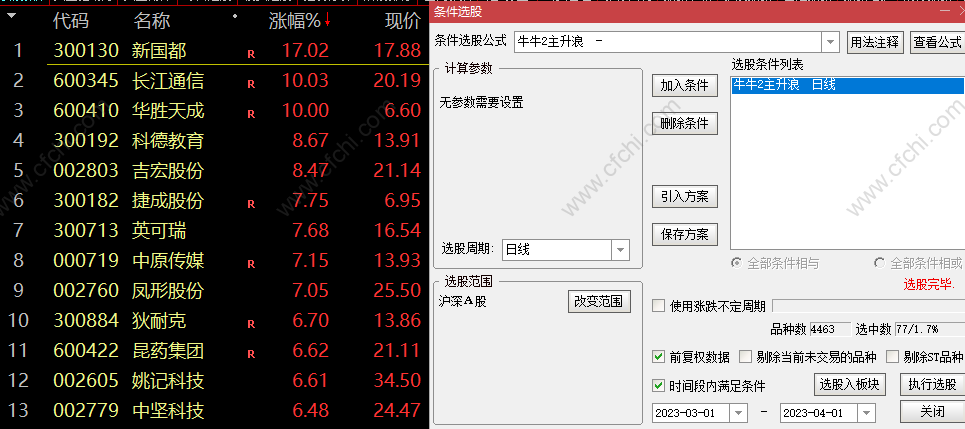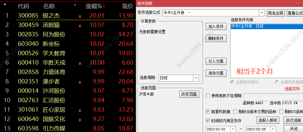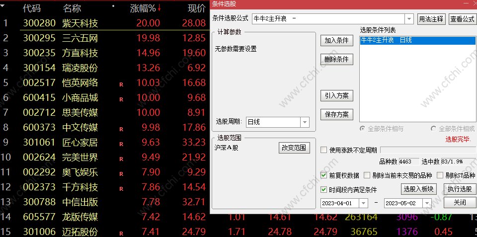 牛主升浪平均一天小于4个股票标准版本..条件过滤器还可以修改你适合范围缩小每天选股量
