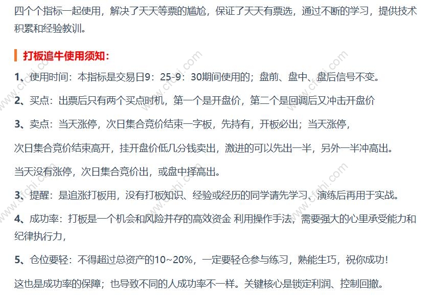财富池指标公式网(www.cfchi.com)提醒您:指标公式是通过数学逻辑角度编写而来,仅是股票分析环节中的一个辅助工具,对股票选股效率和分析便捷上起到一定的作用,股市是具有不确定性和不可预测性的,请正常对待和使用指标公式!