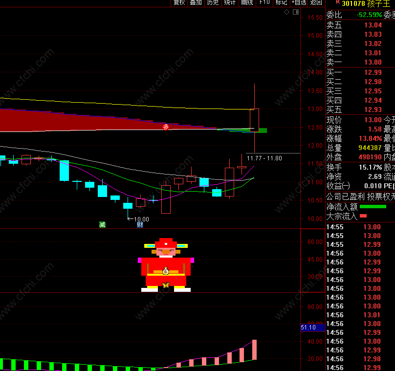 条件选股添加当前热点.题材文字.选股更少波段王 .2023财神到.按照图中来买卖.非常适合上班族..财神到.差不多买阶段底部.一个主图.2个附图1选股票
