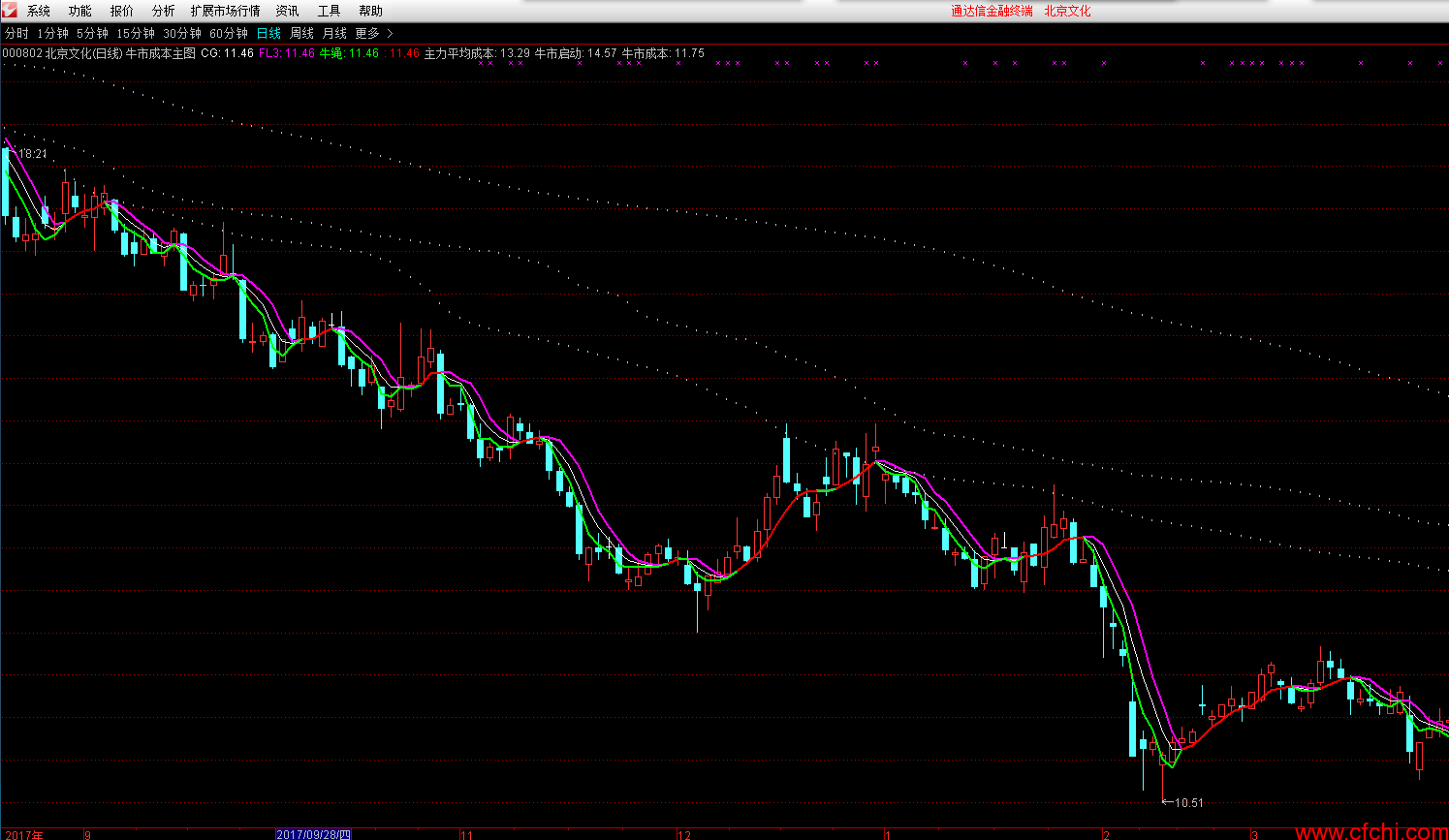 牛市成本:EMA(COST(34),3),LINETHICK2,POINTDOT;
