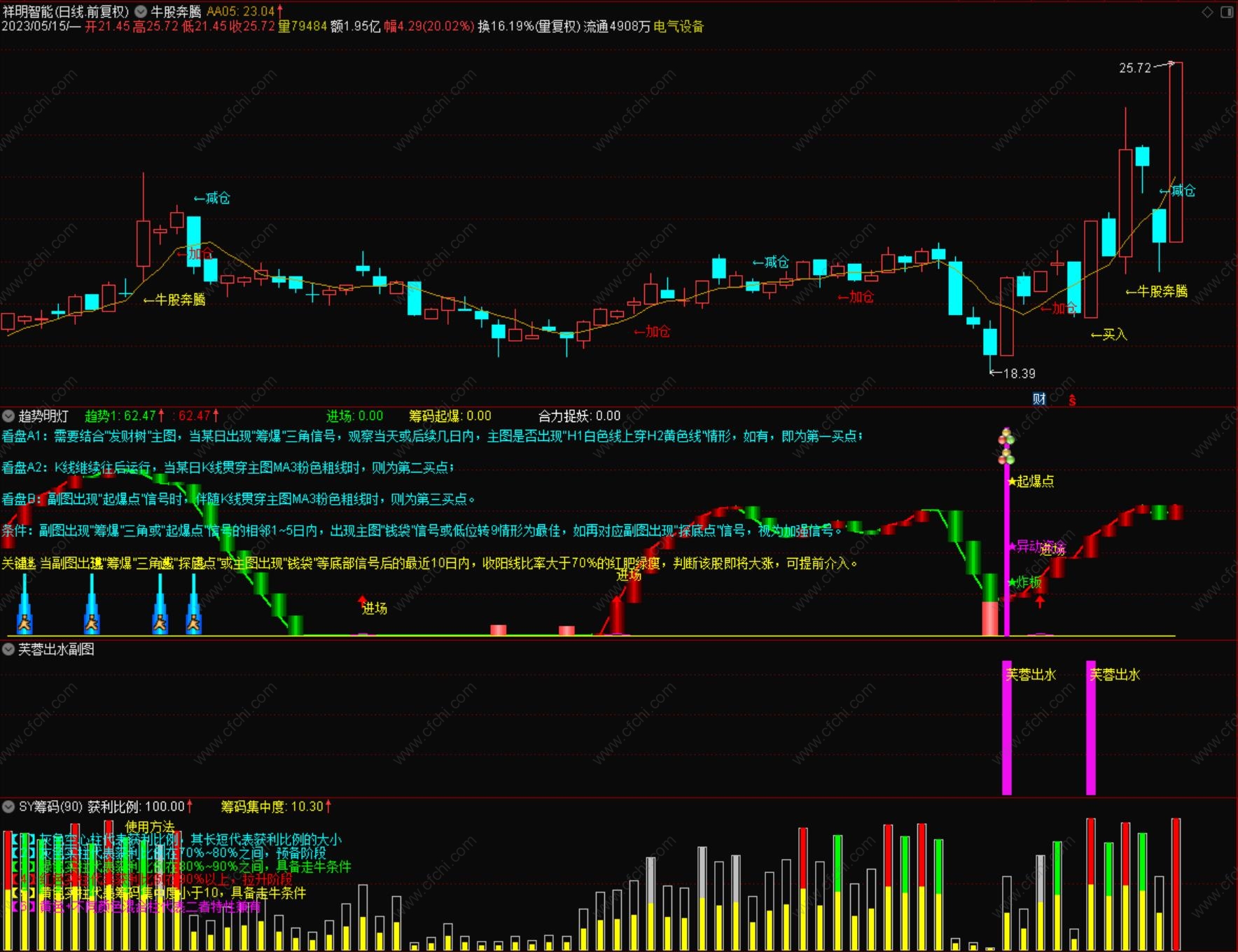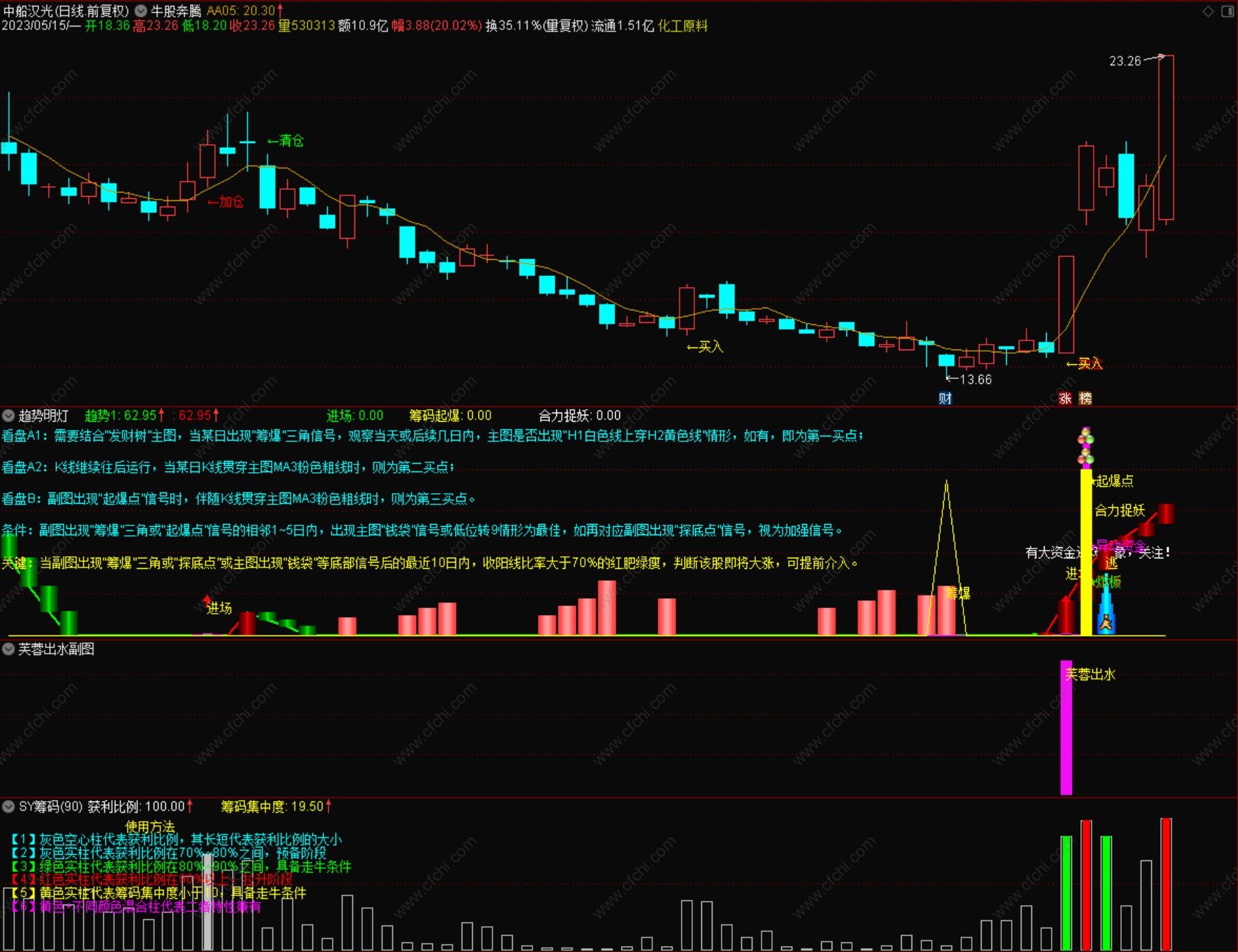 (【组合无敌系列】之合力捉妖组合,牛股奔腾主图选股+趋势明灯副图+芙蓉出水副图选股+SY筹码副图,优秀)