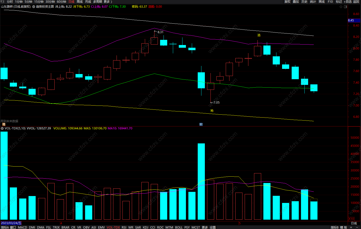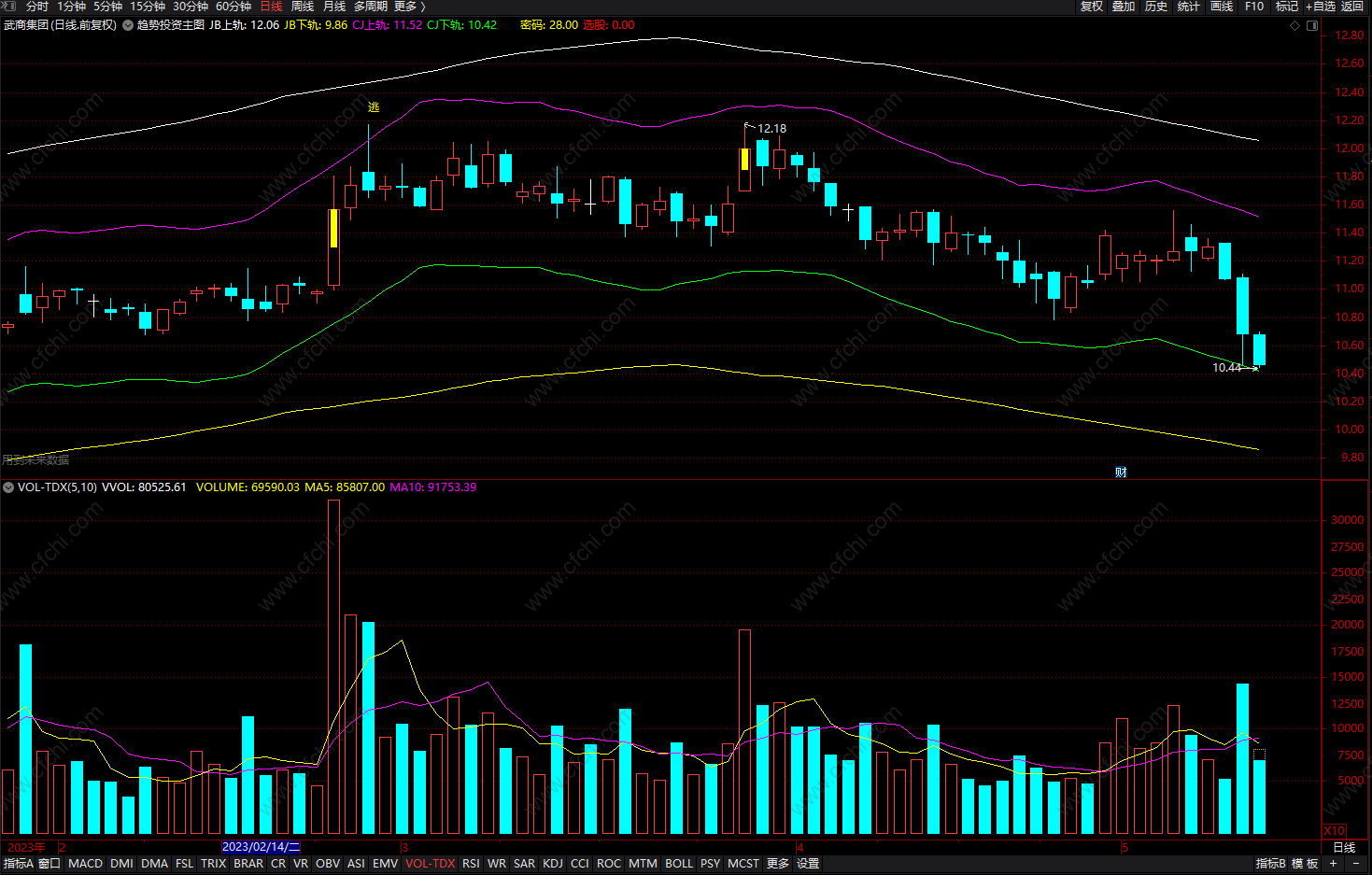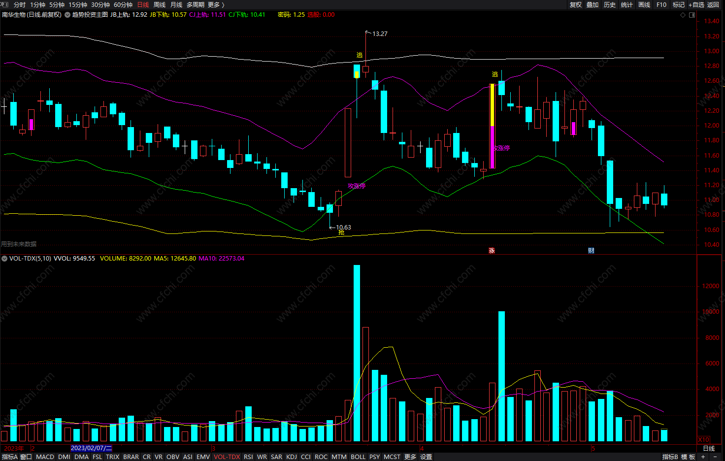 DRAWTEXT(CROSS(H,CJ上轨),(H * 1.01),'逃'),COLORYELLOW;