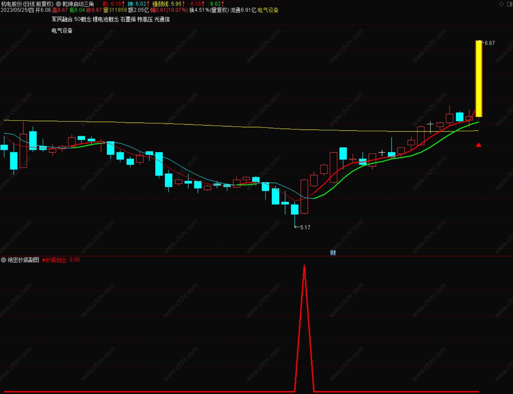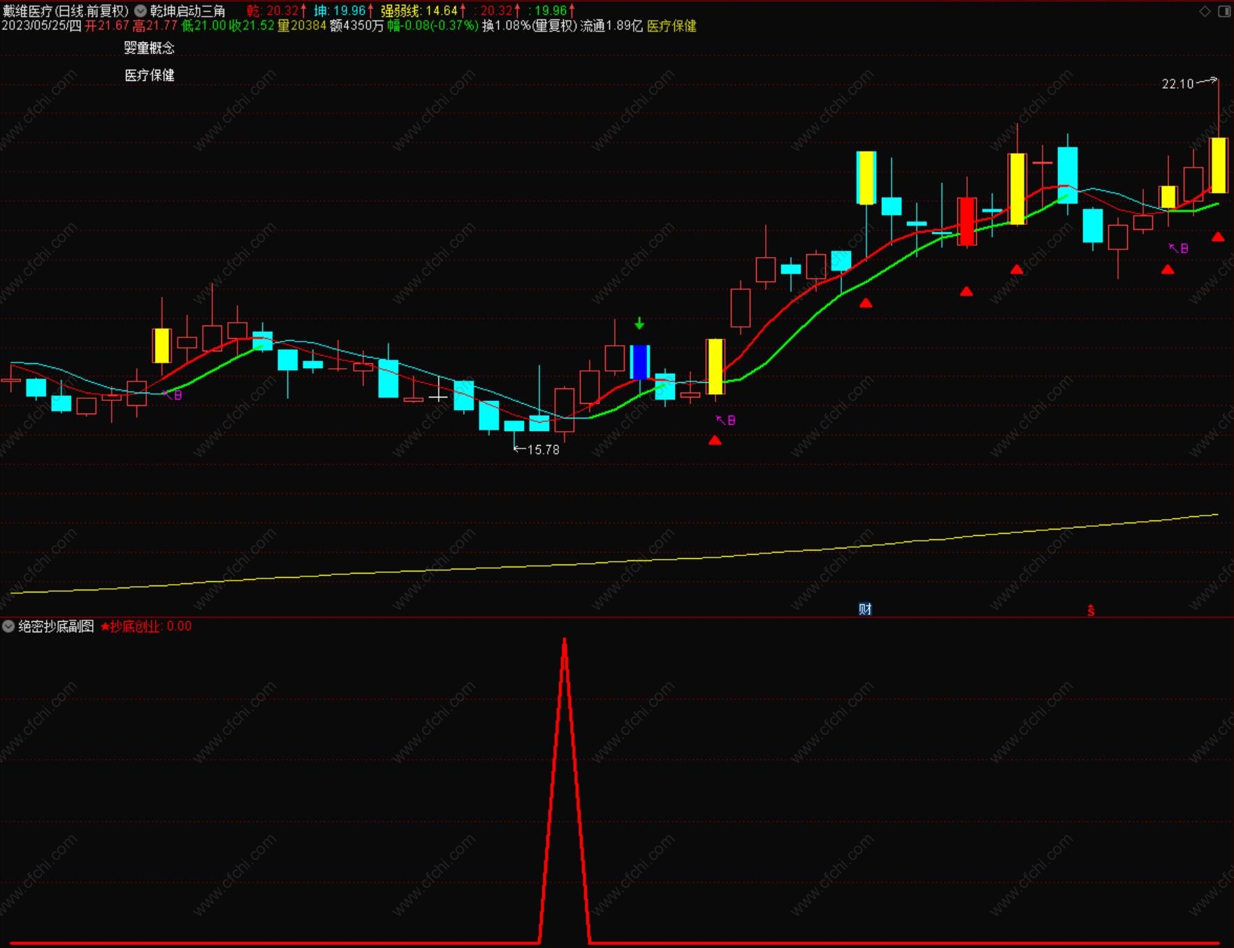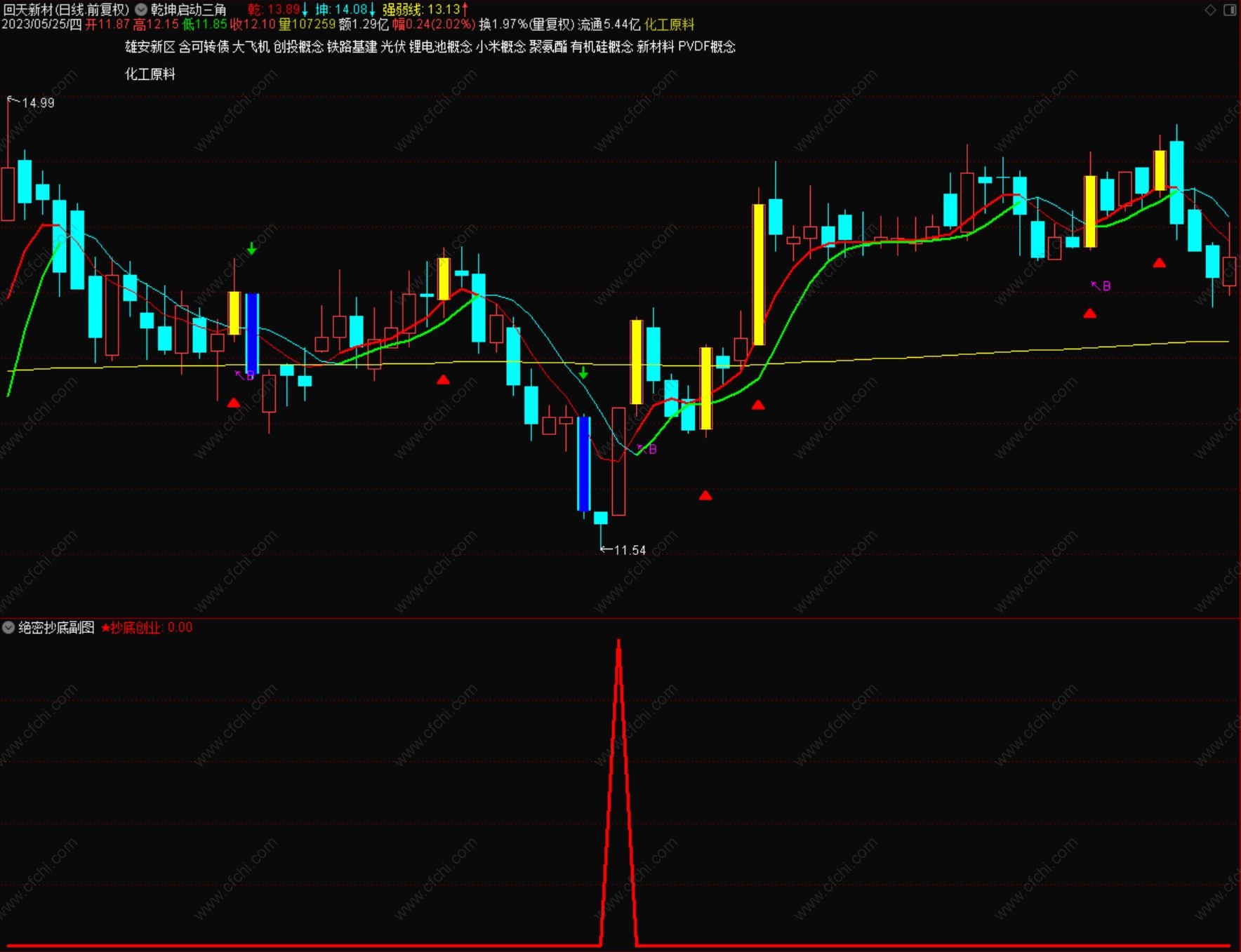 (短线出击乾坤老师乾坤启动三角主图+战神《绝密抄底》创业版抄底神器副图选股,无未来、不加密!)