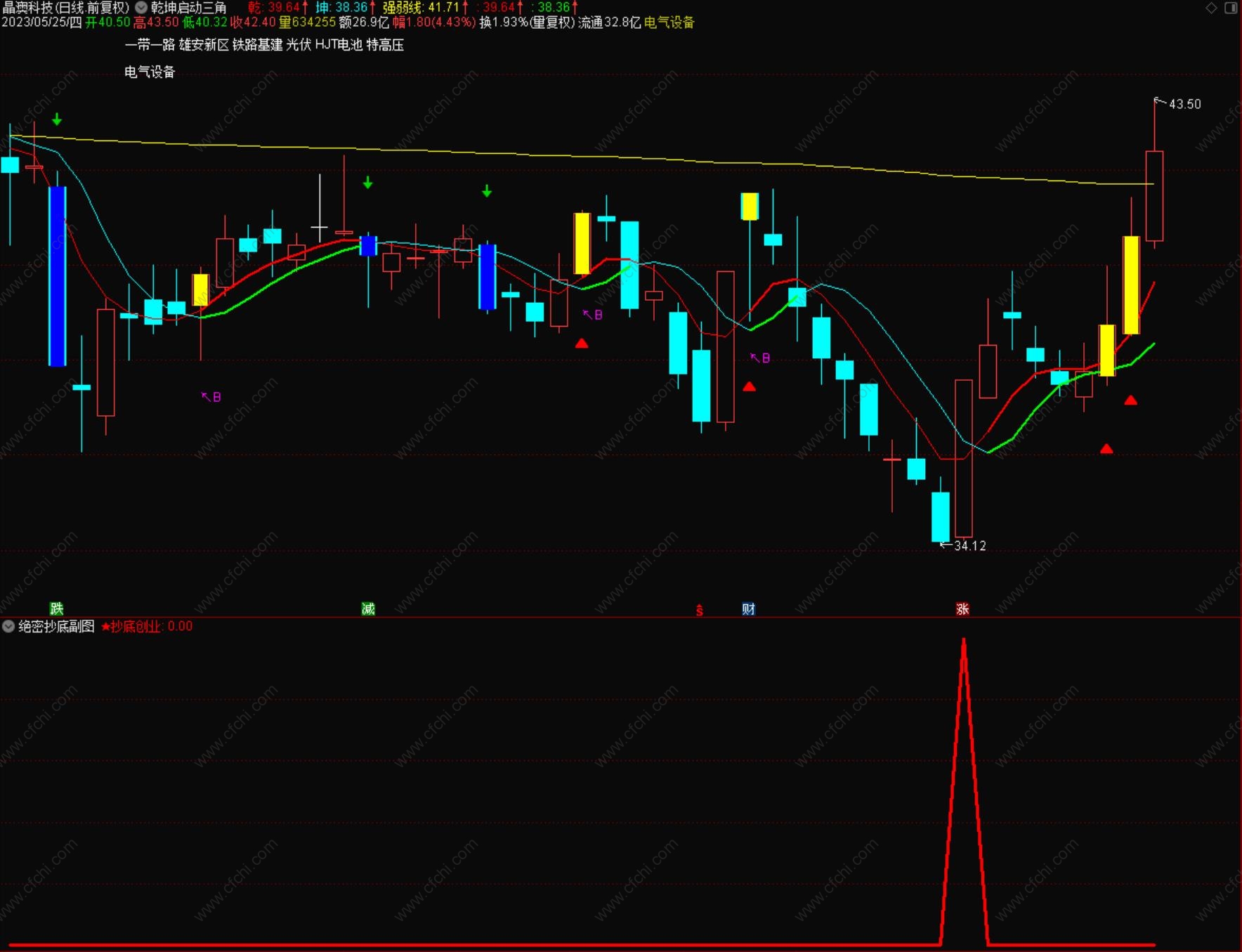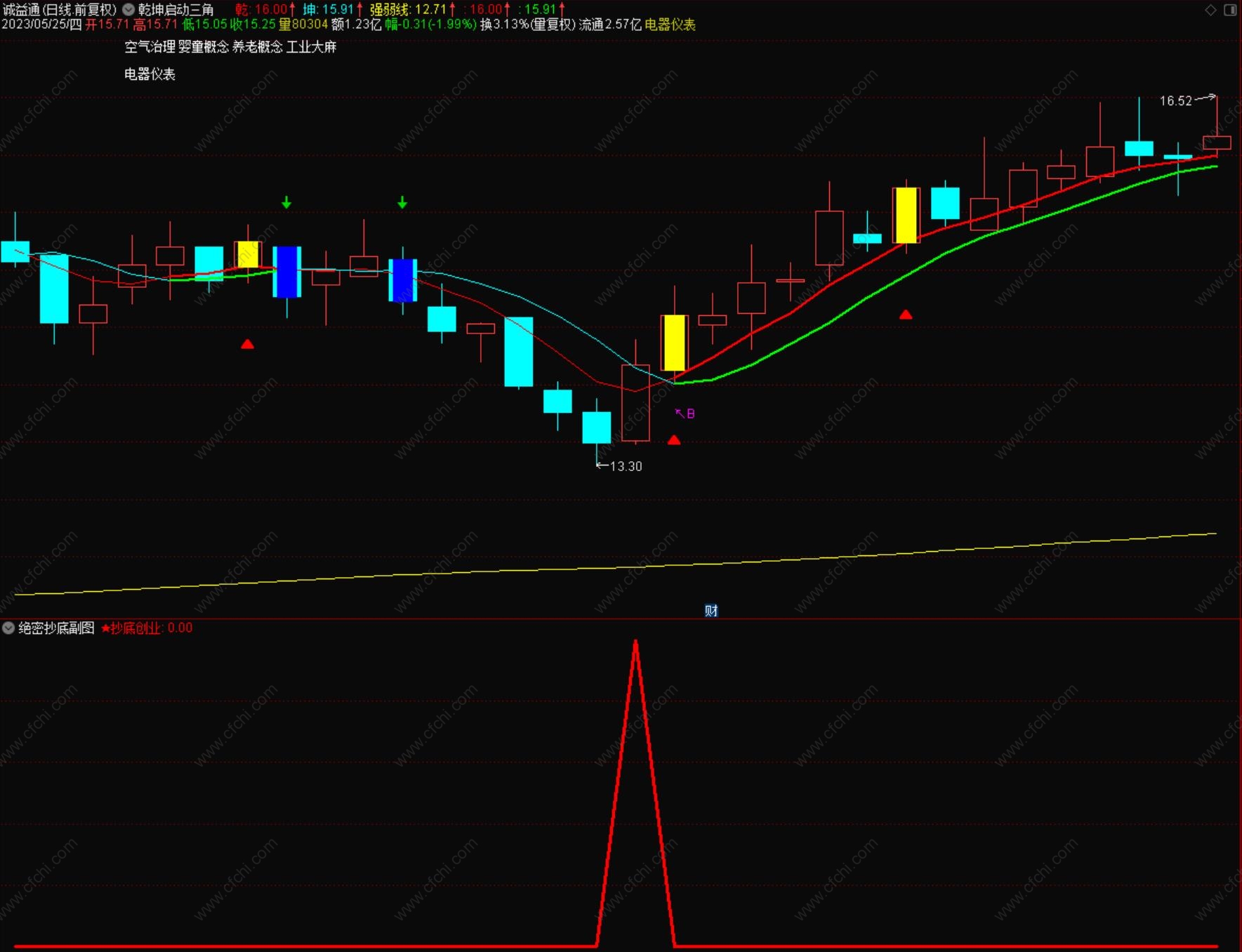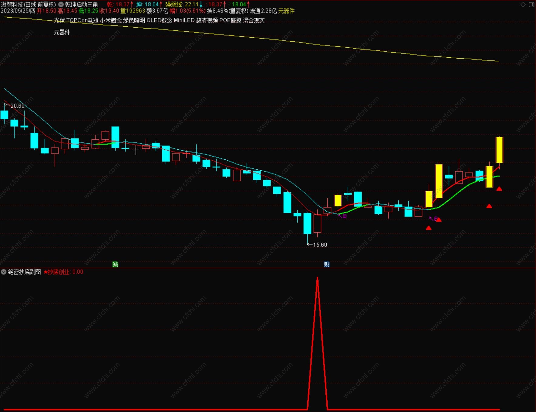 (短线出击乾坤老师乾坤启动三角主图+战神《绝密抄底》创业版抄底神器副图选股,无未来、不加密!)