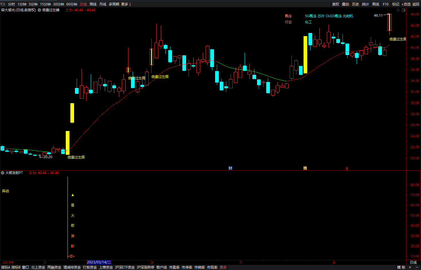 通达信倍量建仓选股指标 左峰回踩火箭发射和黄金柱关注指标公式 主副图 源码