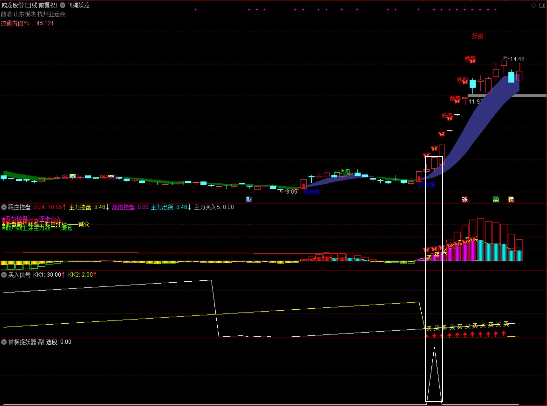 (【蝶恋花。双蝶】飞蝶妖龙套装(升级版) 蝴蝶共振抓牛股 主副选 源码指标分享)