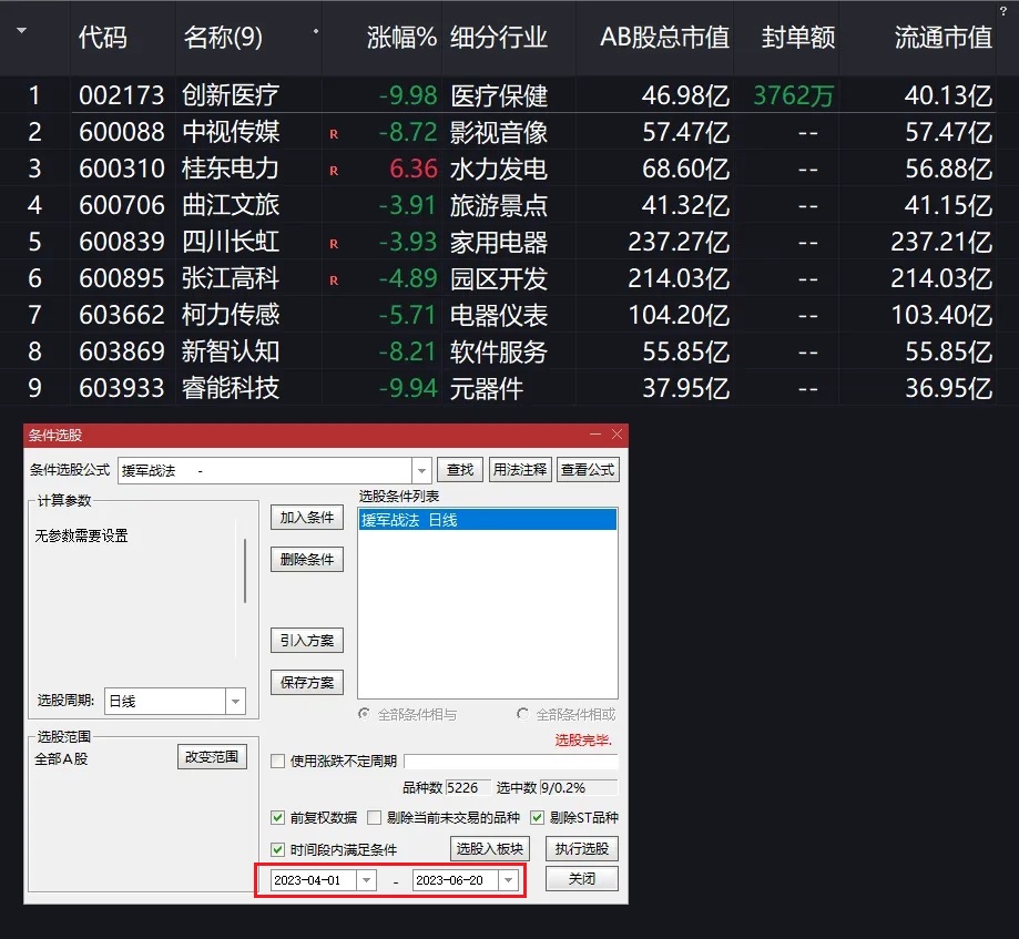 (《援军战法》通达信援军战法主副图选股指标,信号少胜率高!源码分享)