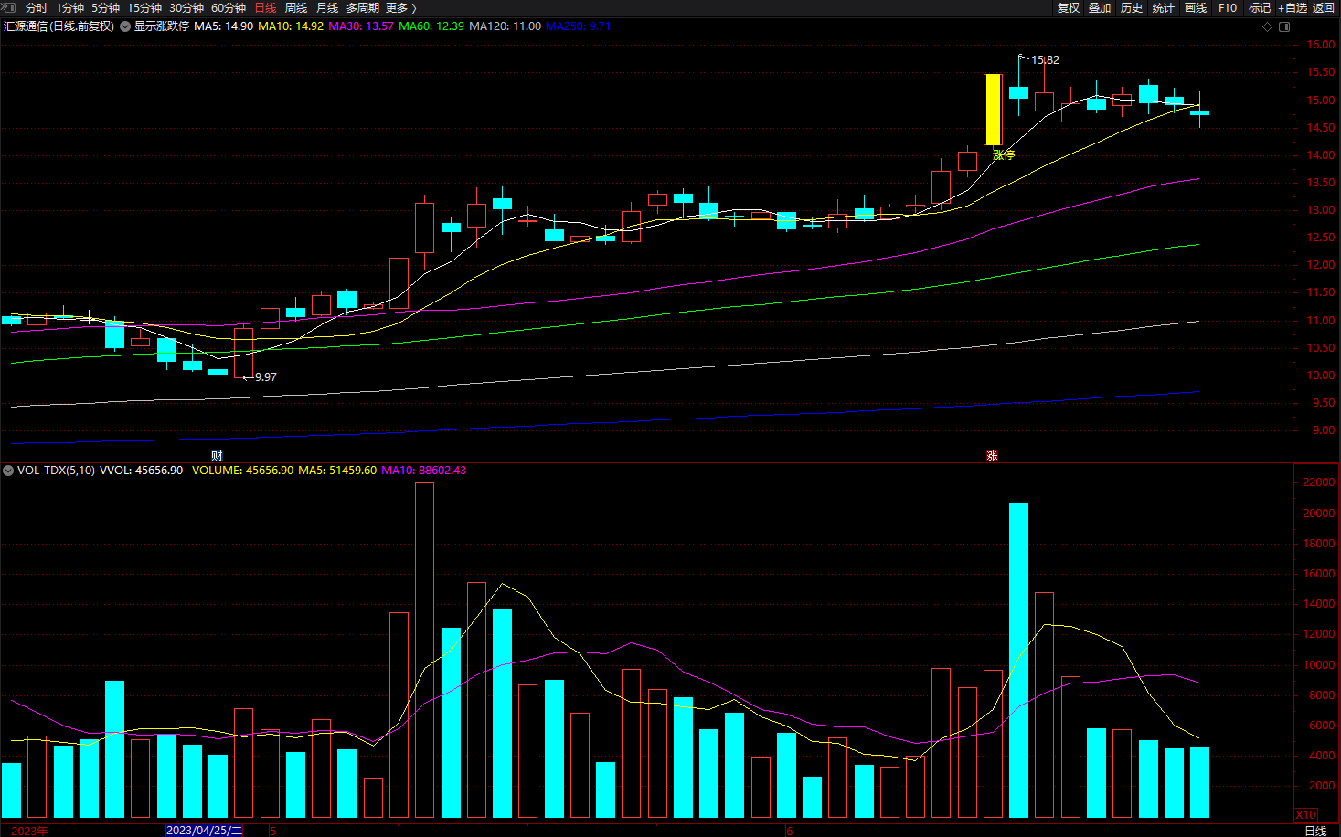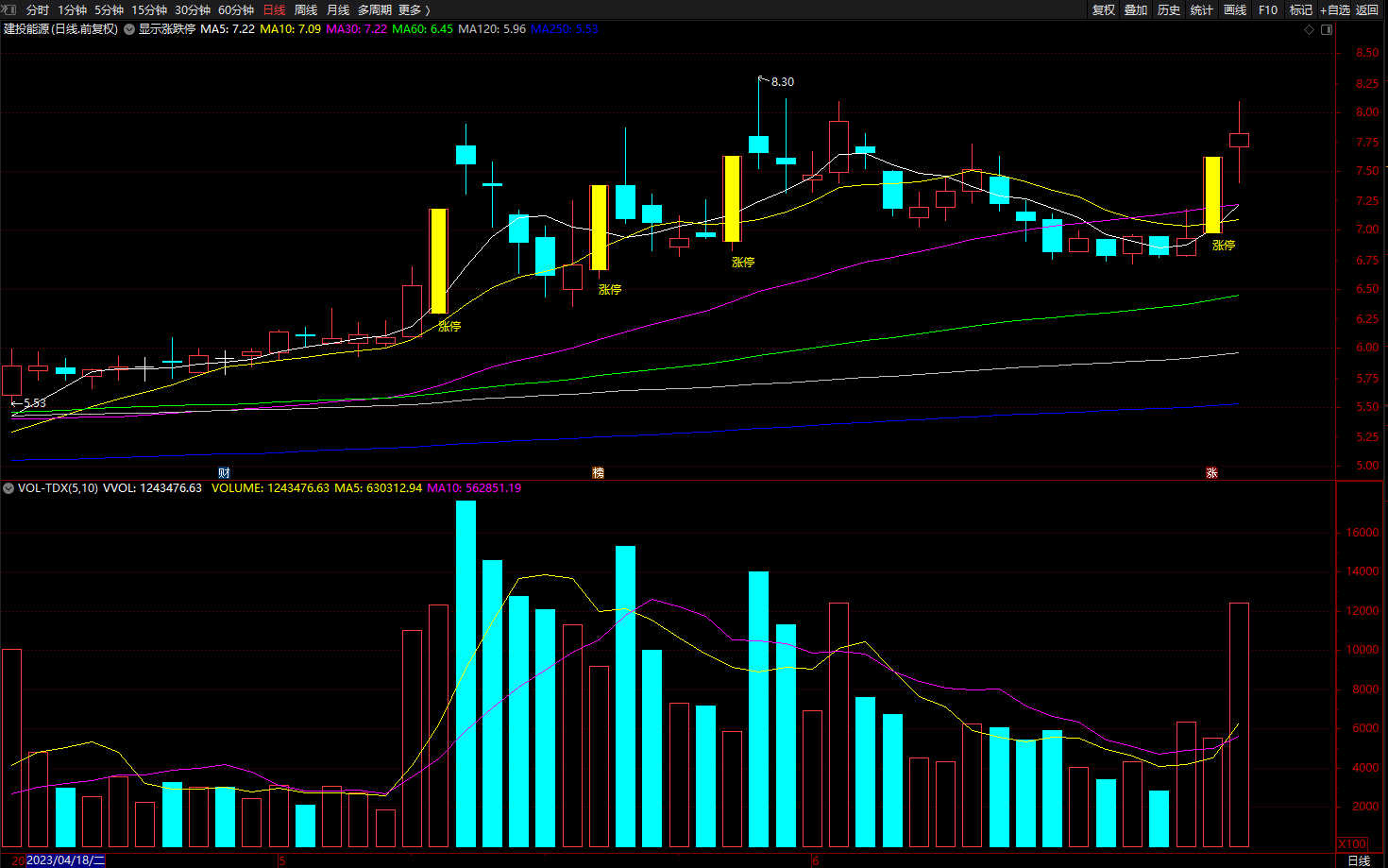套用通达信涨跌停显示,方便在日K线中发现趋势