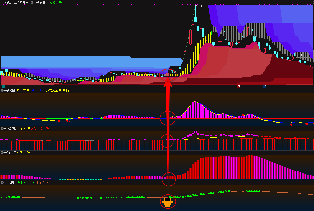 (通达信《趋势共振系列》主副图选股指标,跟随趋势抓大牛!)