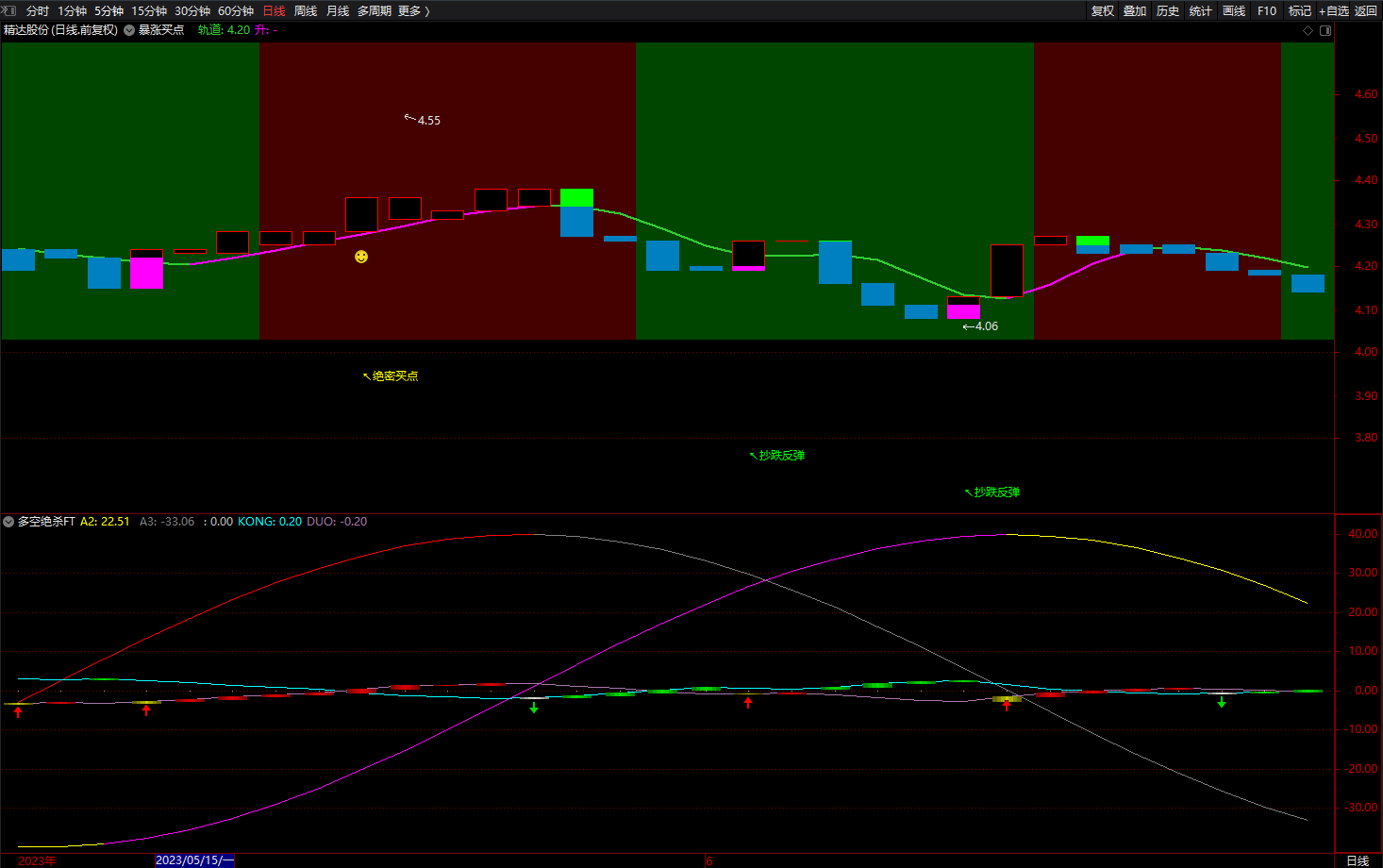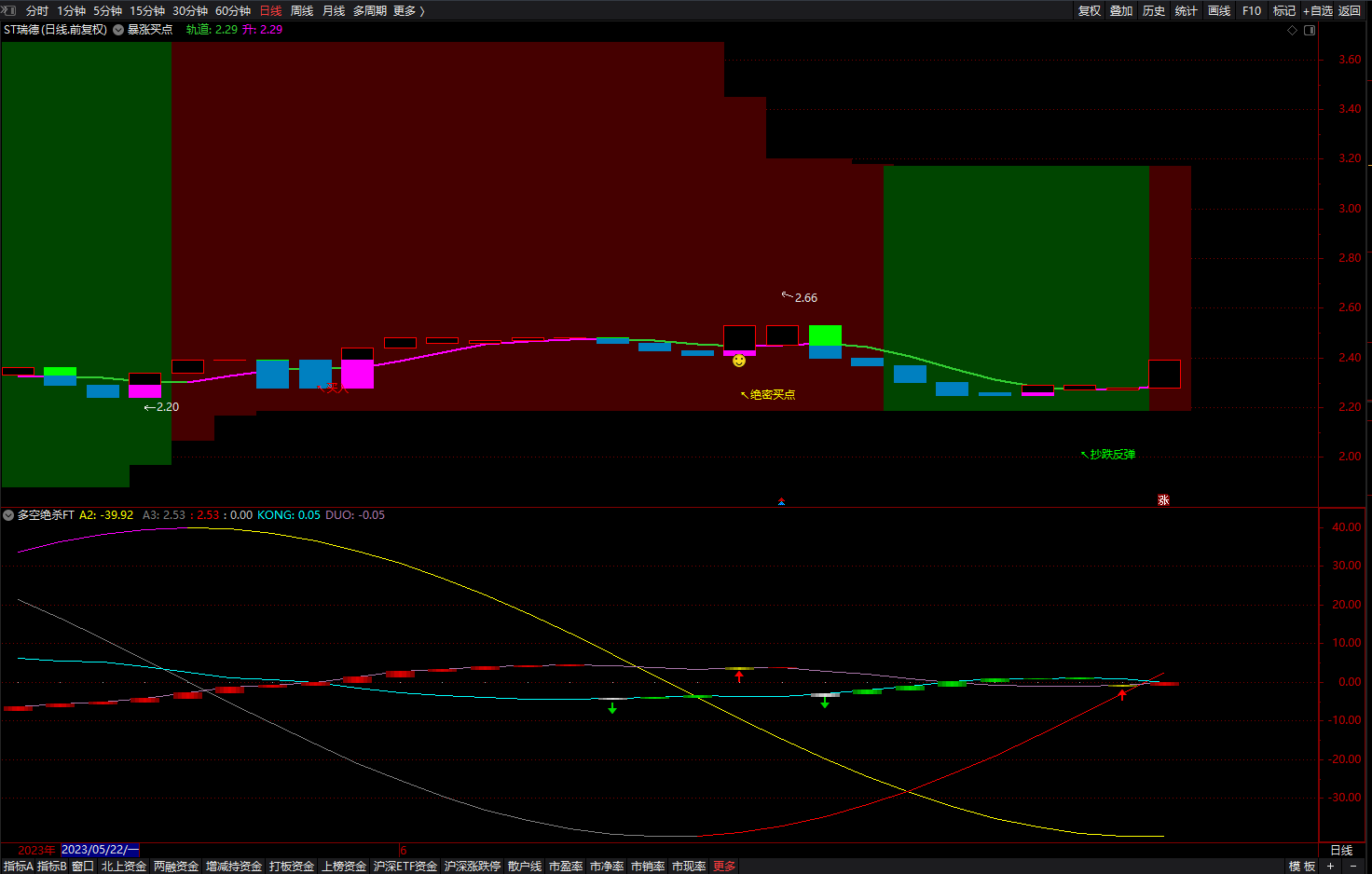 主图k线为红色的时候可以低吸,具体要多结合其他指标共振,单一指标胜率都不会特别高,越多好的东西共振越能代表确实走强了。