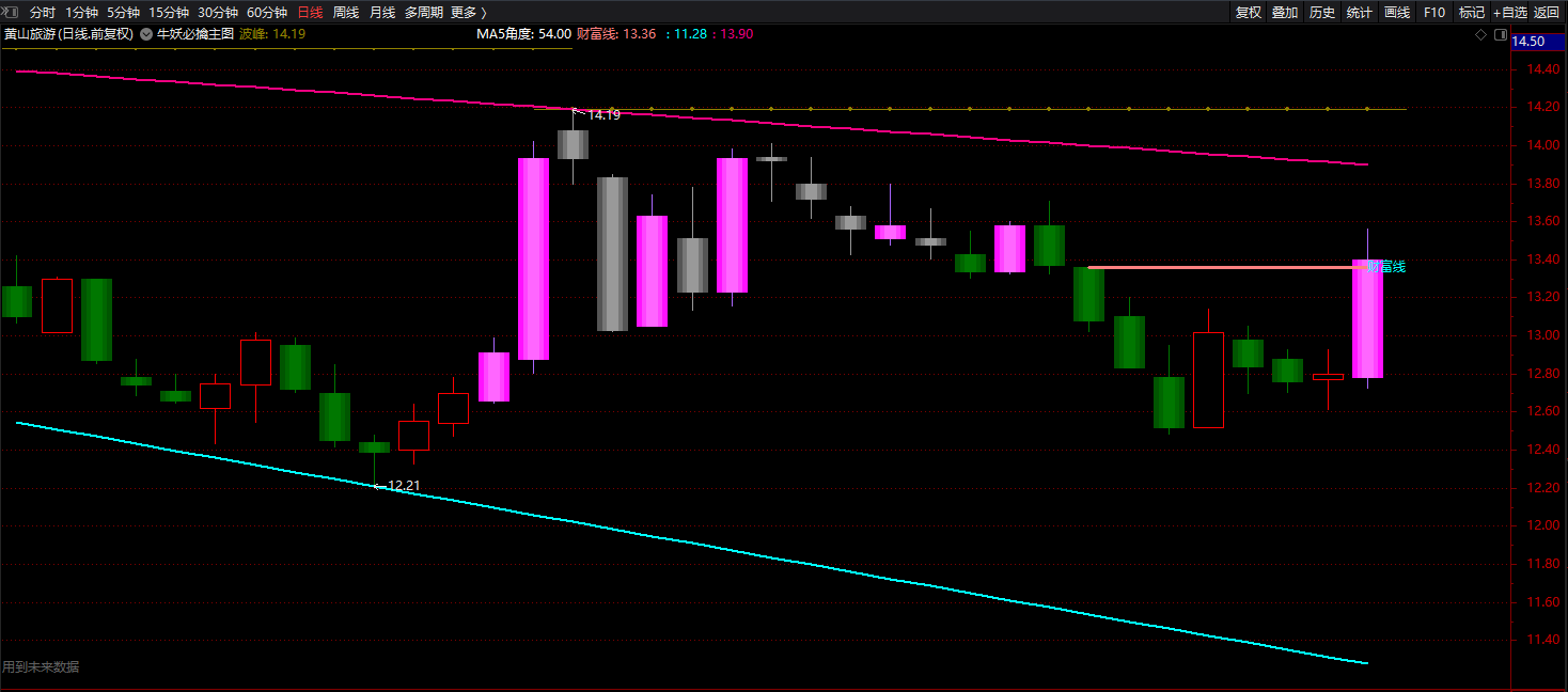 用来观察个股是否将要起飞,主要是那个财富线比较牛,过了这根线,可能走妖!
