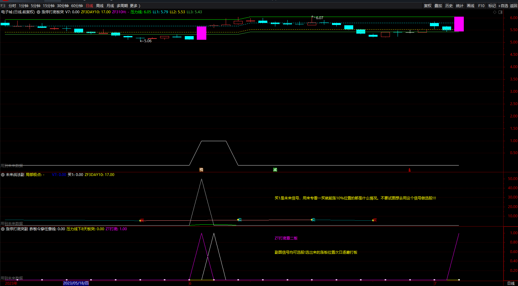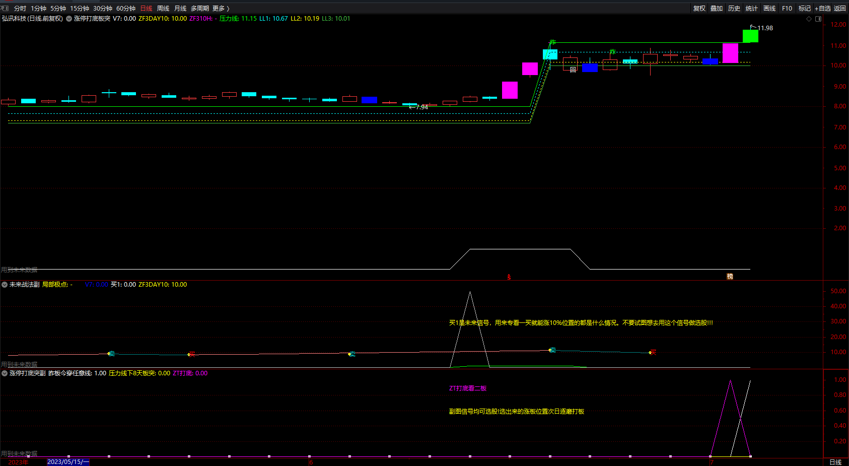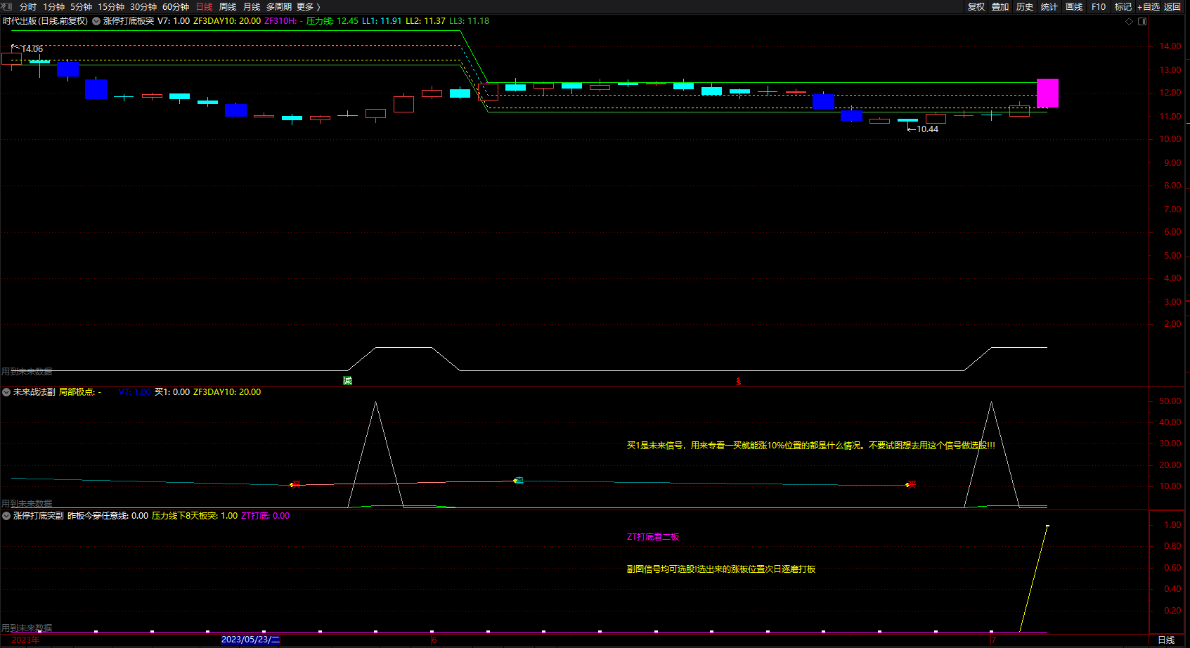 继续观察,再将涨板位置代入其中。可看出线下位置的涨板之后的走势,这个板就是打底,看之后的二板。