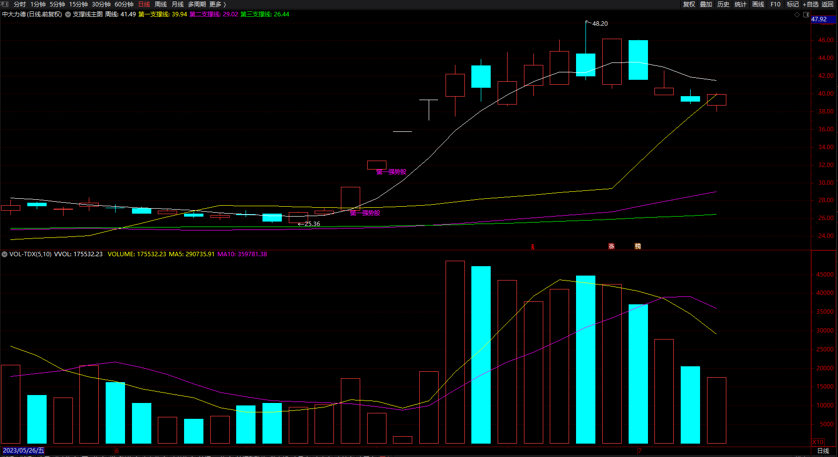第二强势股的特征是:跌破第二支撑线后短时间上穿之(不跌破第三支撑线);