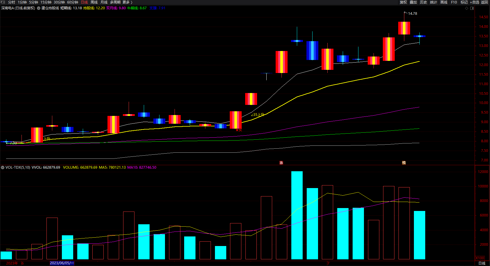 持股线:EMA(CLOSE,14),LINETHICK2;