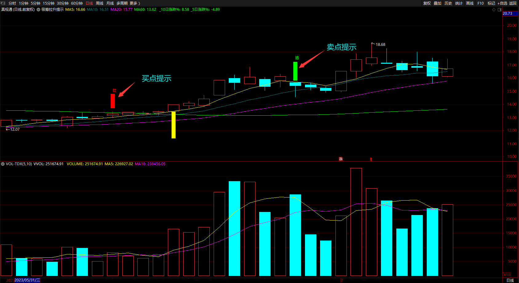 (赚钱趋势指标公式 通达信实用的主力吸筹拉升逃顶提示 主图 源码 )