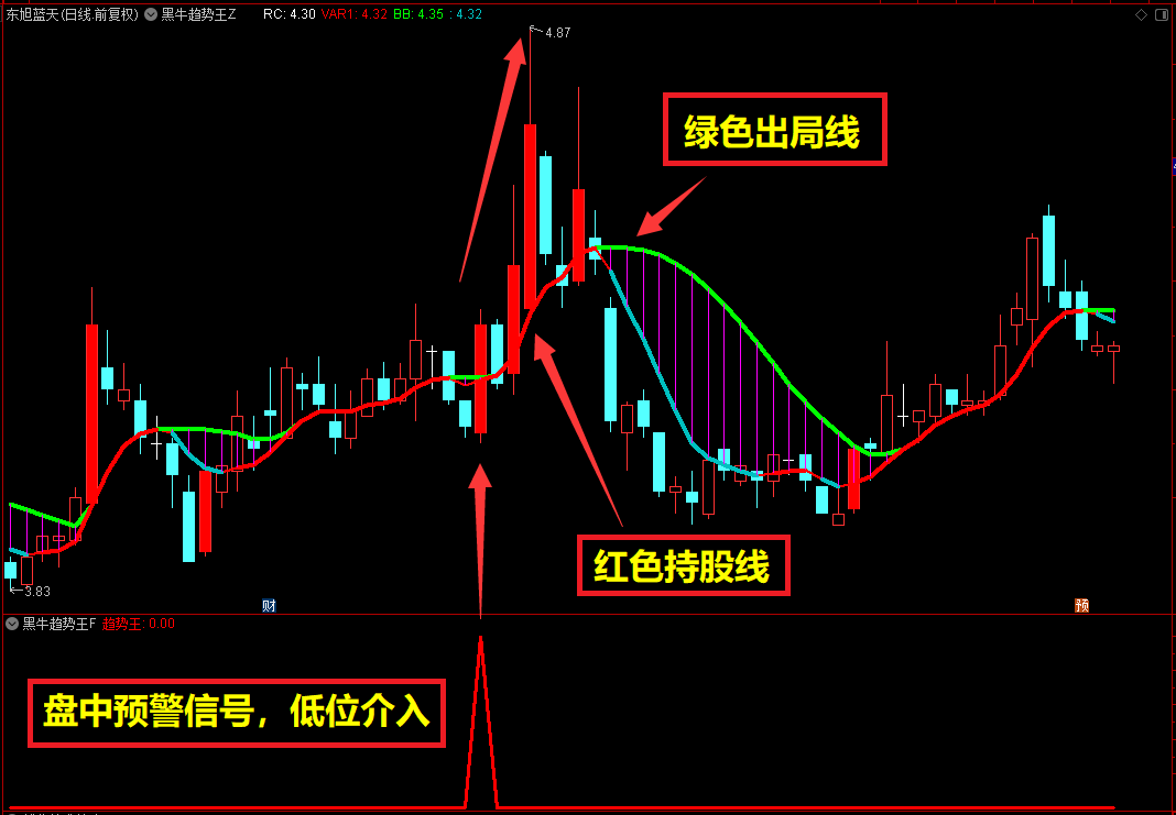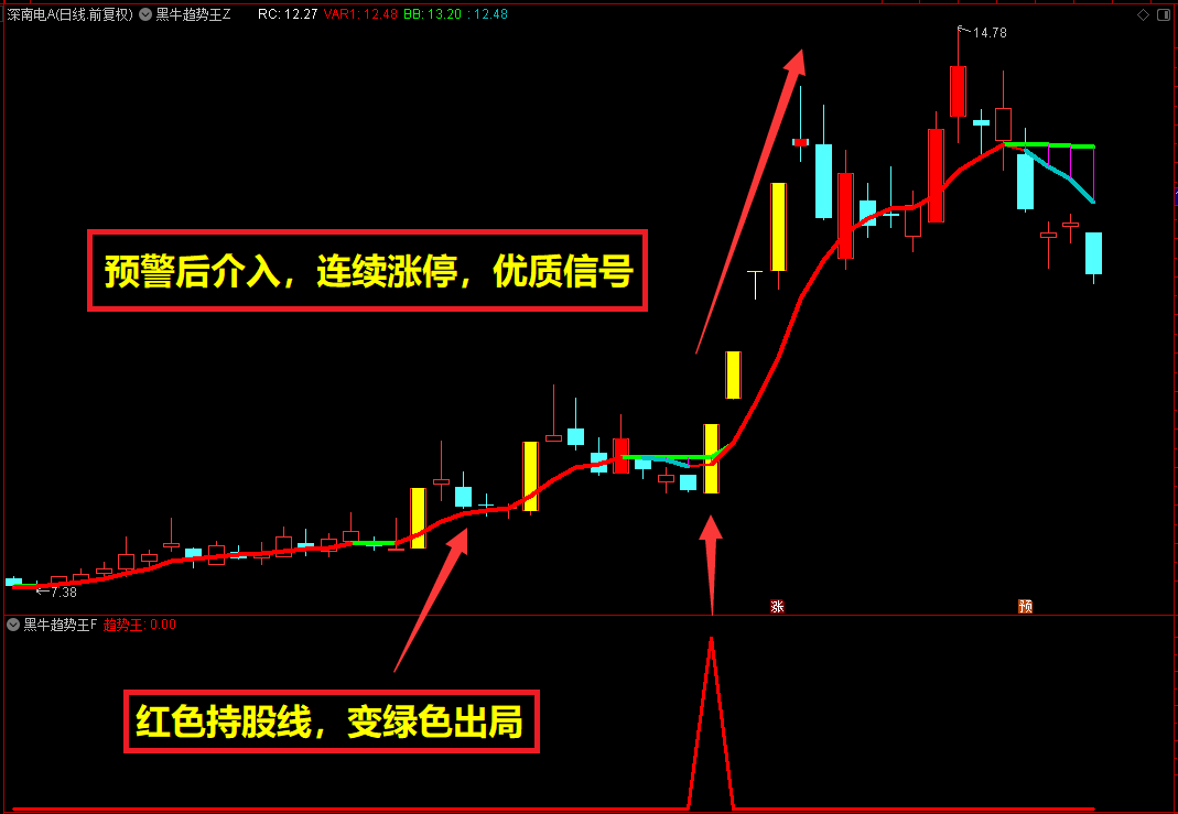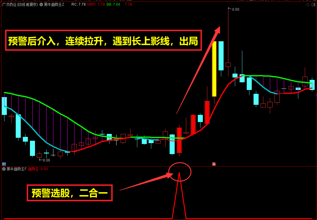 (通达信 VIP 超牛《黑牛趋势王》主图+副图+预警指标,源码分享)