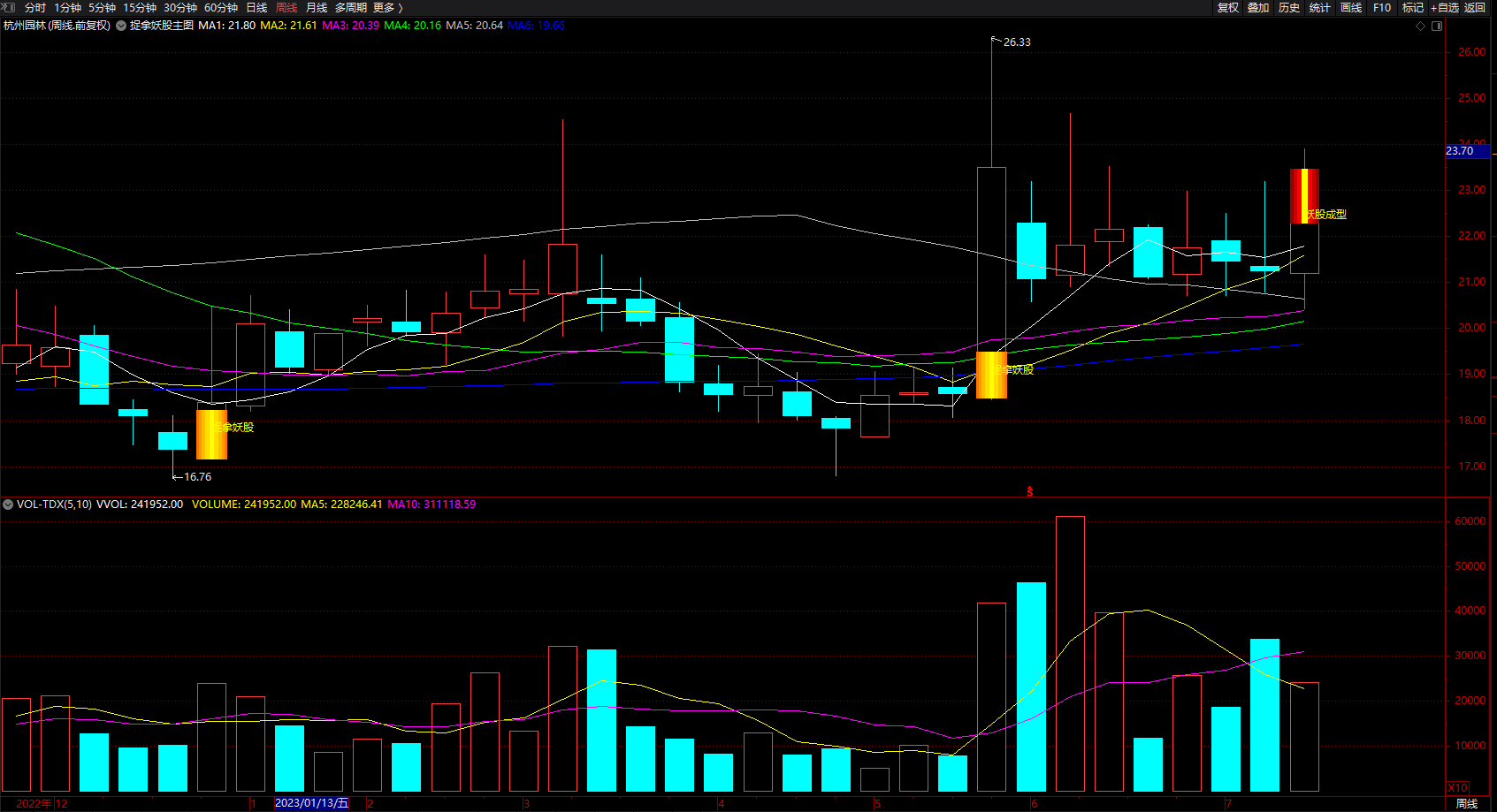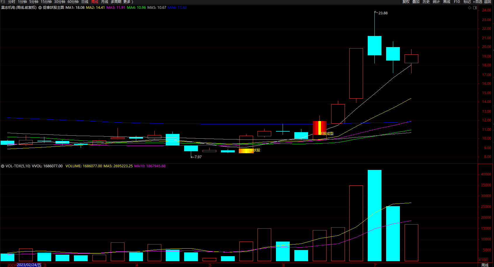 妖股主图指标,使用了跨周期函数WEEK及MONTH,信号谨慎参考!