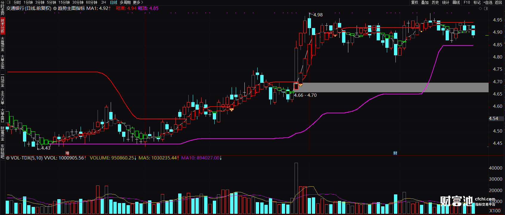 (通达信趋势主图指标公式 超强趋势预判箱体公式 无未来 副图)
