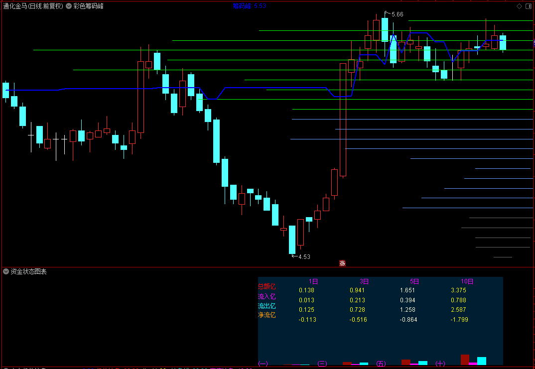 资金状态图表: 一、三、五、十日资金流入流出状态图表。