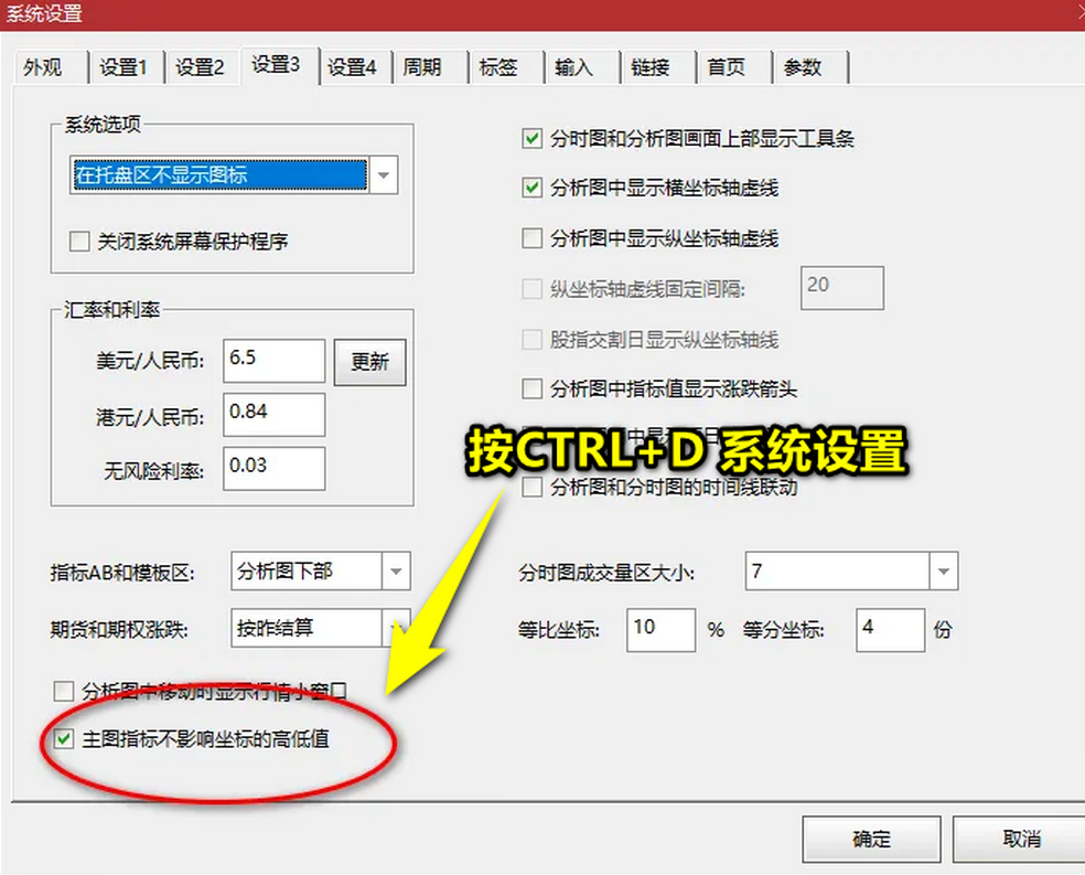 如果通达信主图有压缩状况,按Crtl+D 选择设置3 主图指标不影响坐标高低值(打钩)