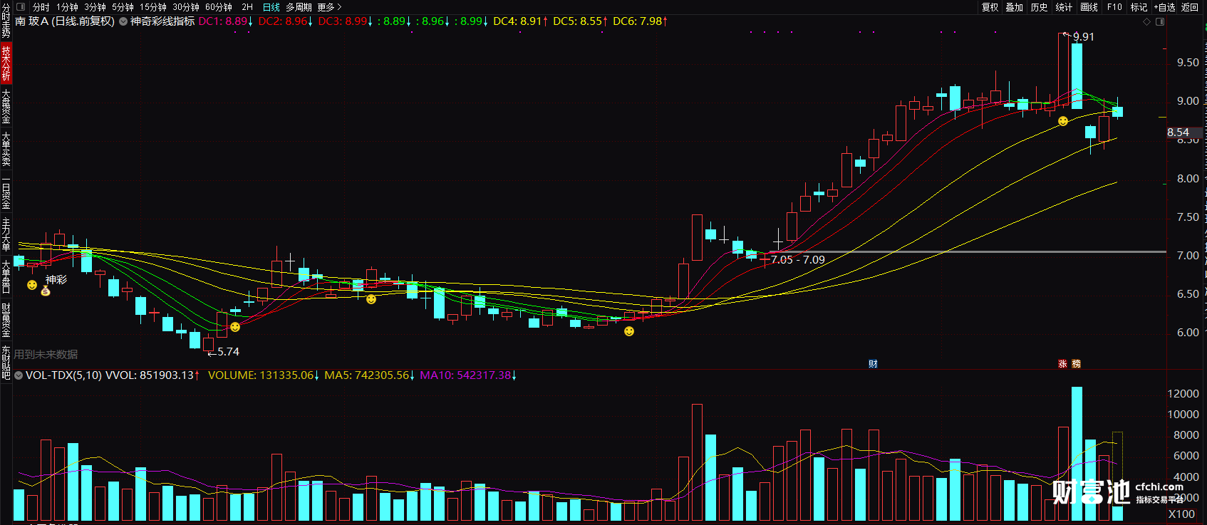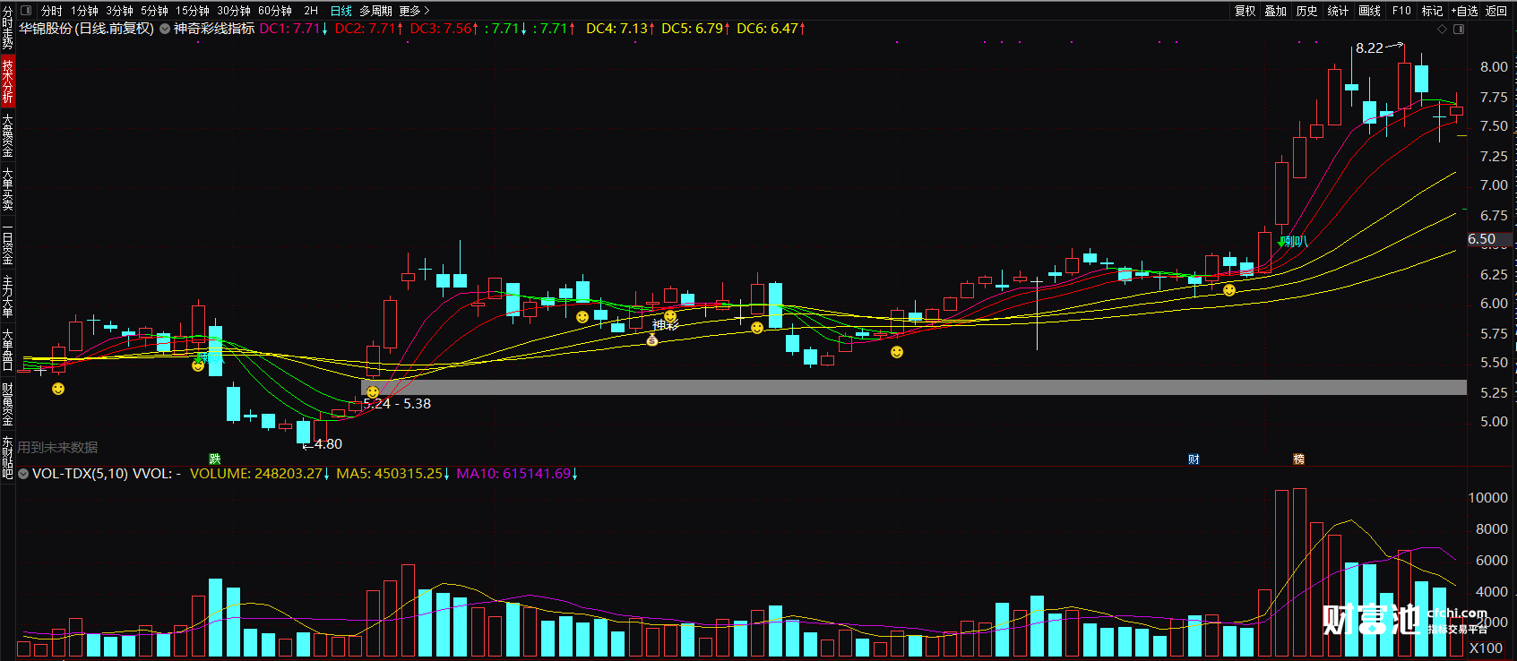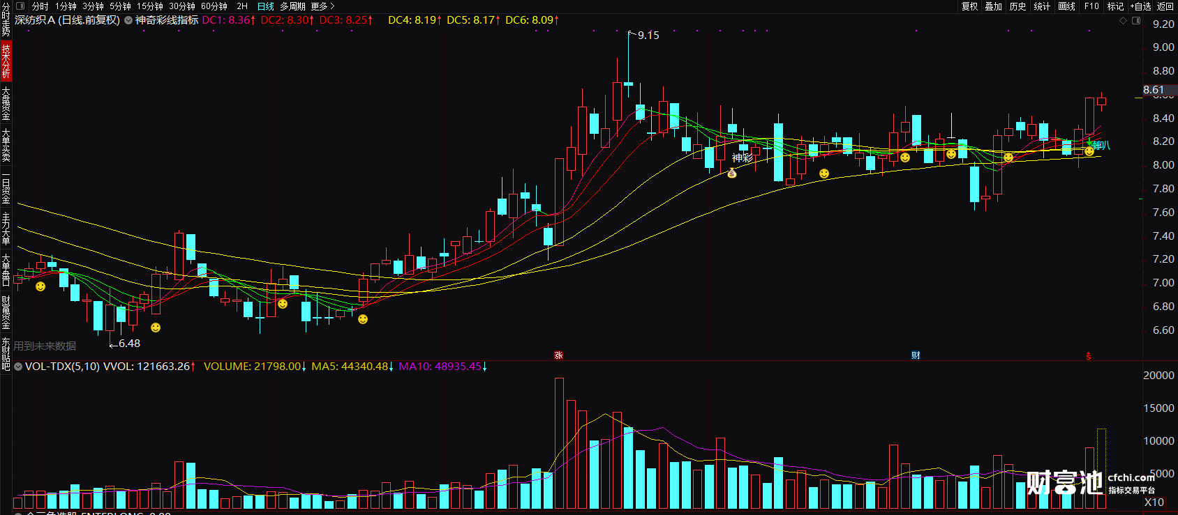 (金三角选股指标 股经叠彩线主图指标公式 通达信无未来函数七彩线指标图解)