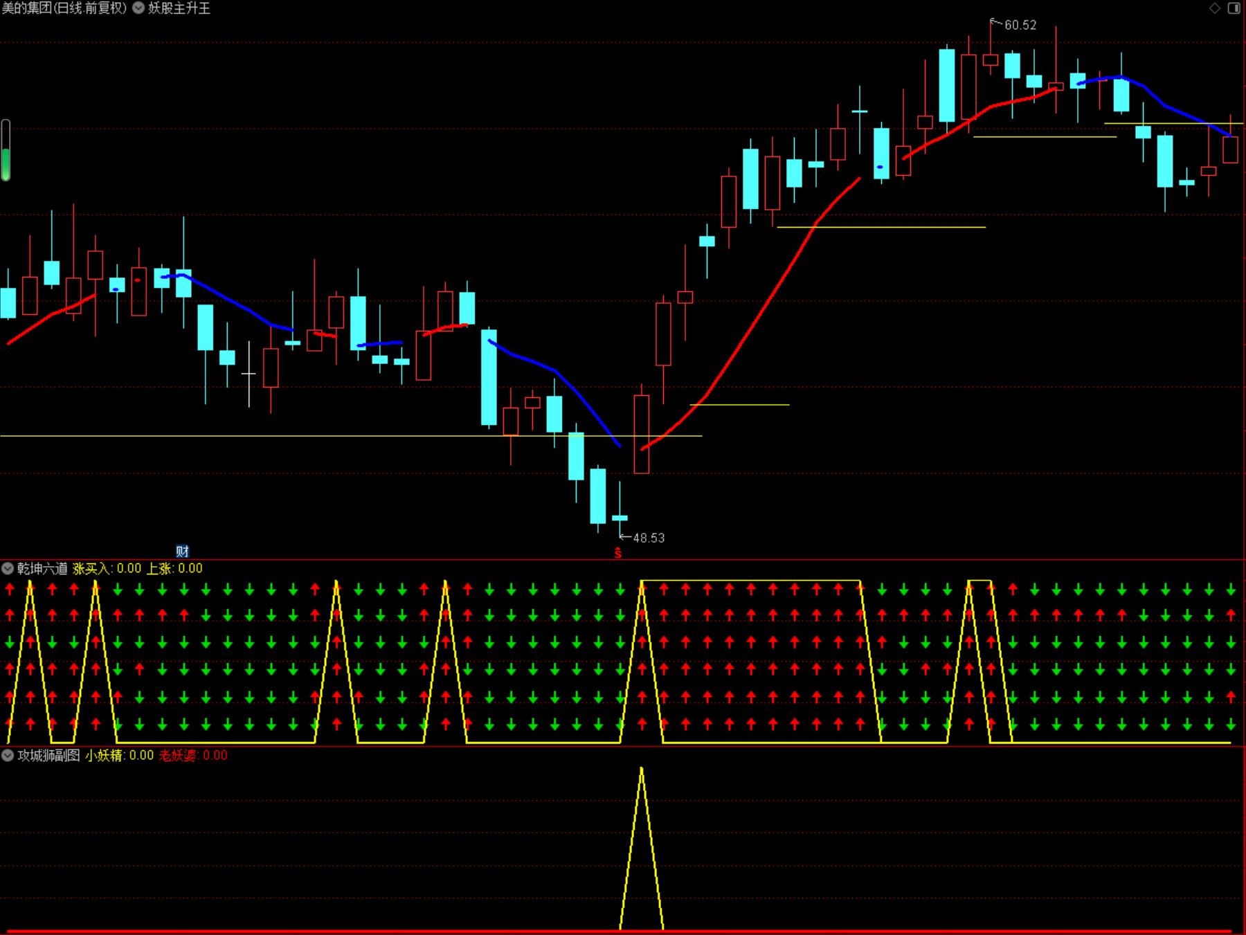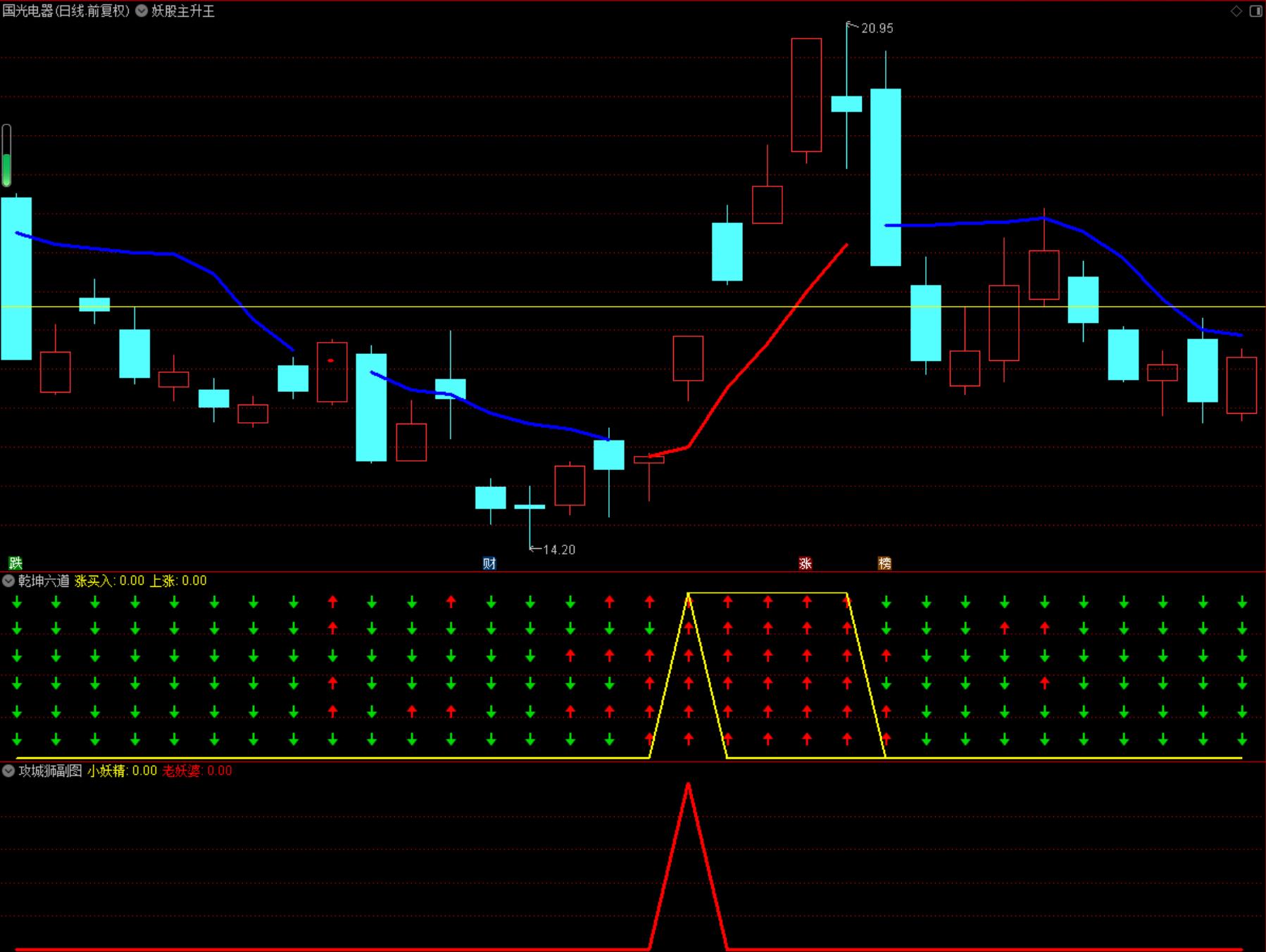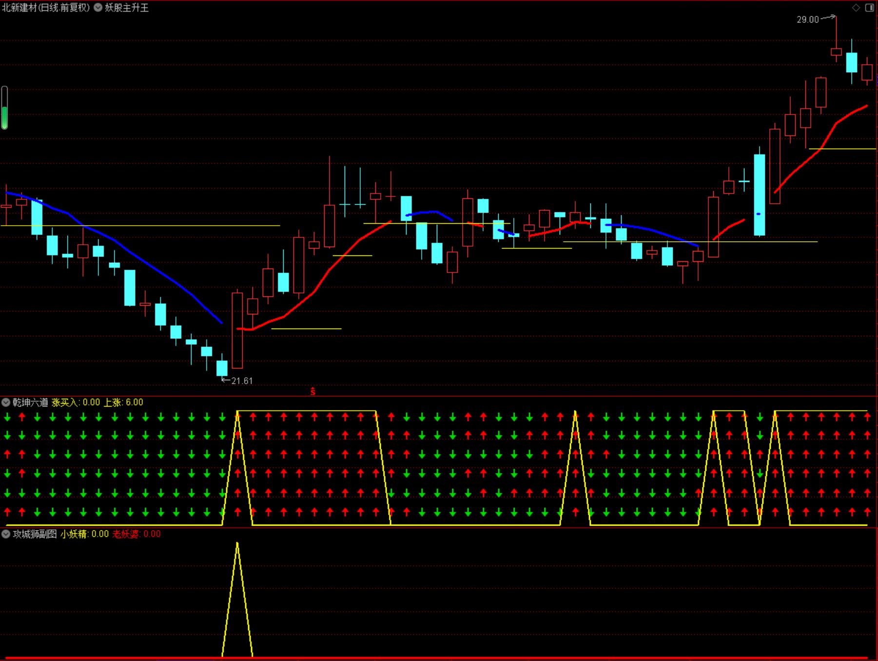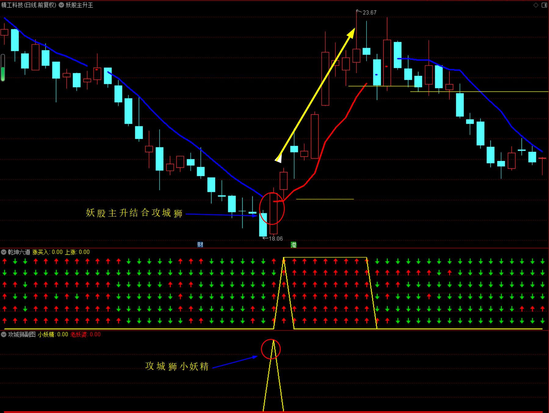 (通达信《攻城狮》套装包含乾坤六道副图选股指标、良心指标回调中阳,确定强势即可买入!)