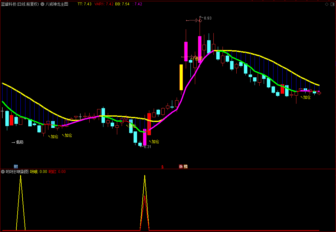 (通达信《哟呀抄啊》副图+选股指标公式, 无敌抄底、 网红源码指标分享!送八戒神龙主图)