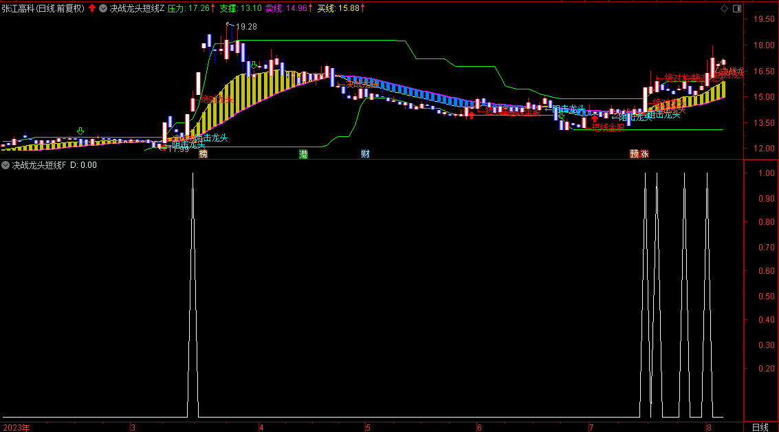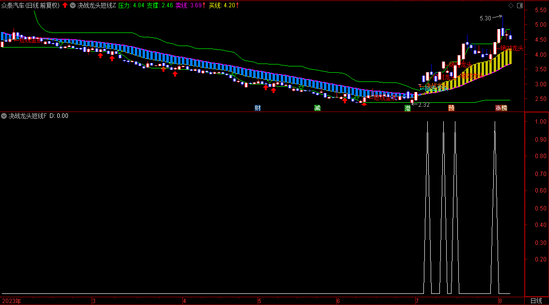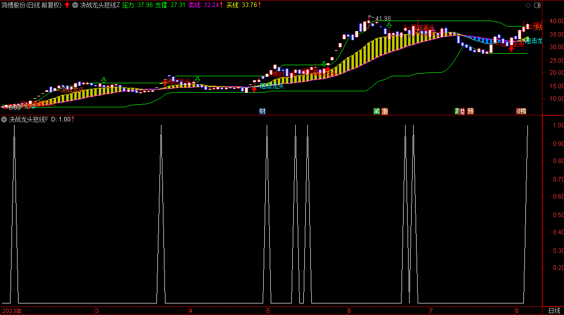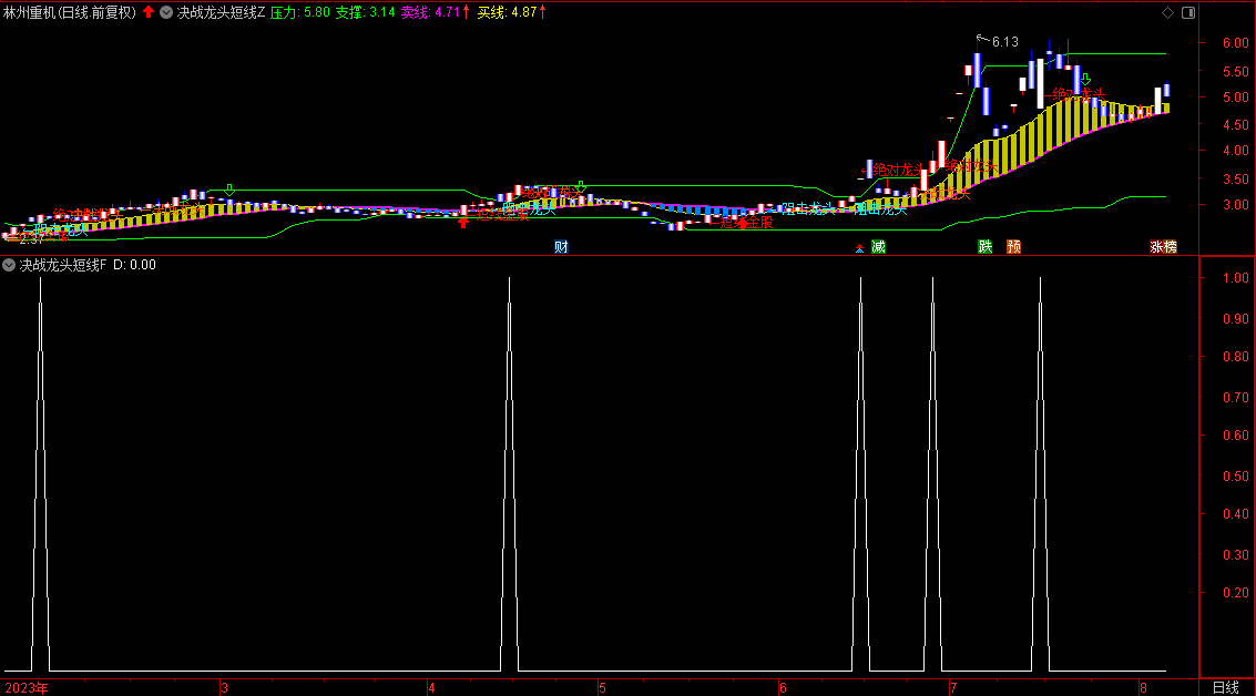 (金典通达信决战龙头主图副图选股指标,祝股市长虹!)
