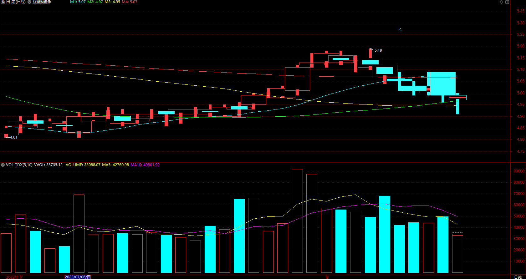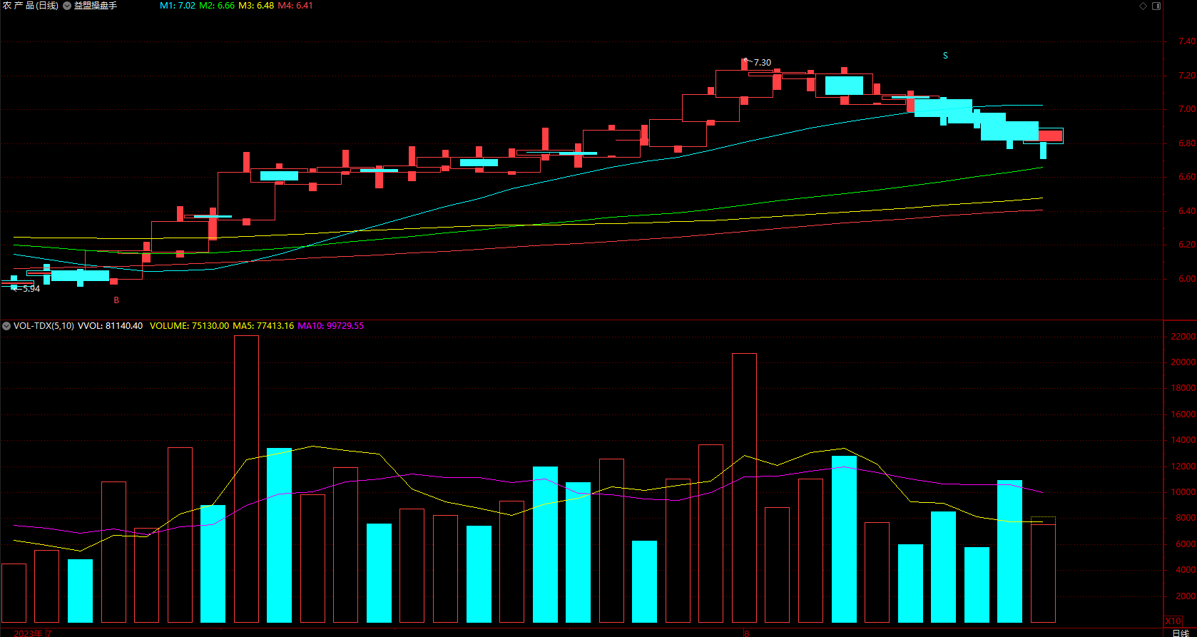 STICKLINE(((OPEN > CLOSE) AND (VAR2 < MA(VAR3,6))),CLOSE,OPEN,7,0),COLORFFFF33;