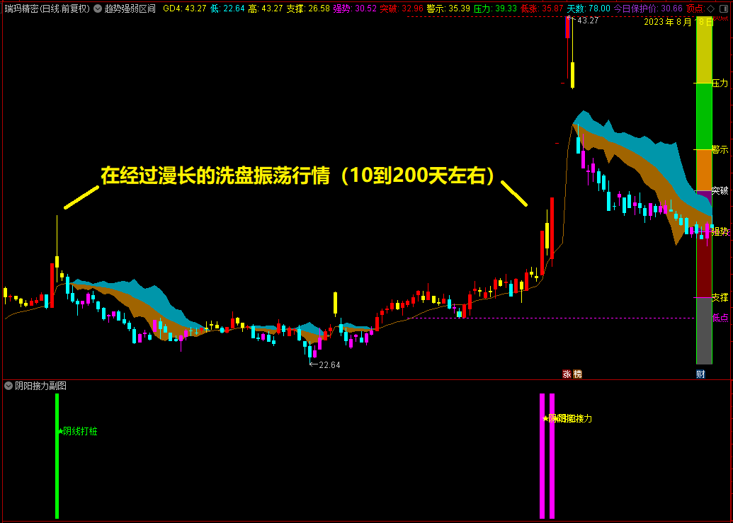 (【通达信】 趋势趋势区间主图+阴阳接力副图选股指标,源码分享)