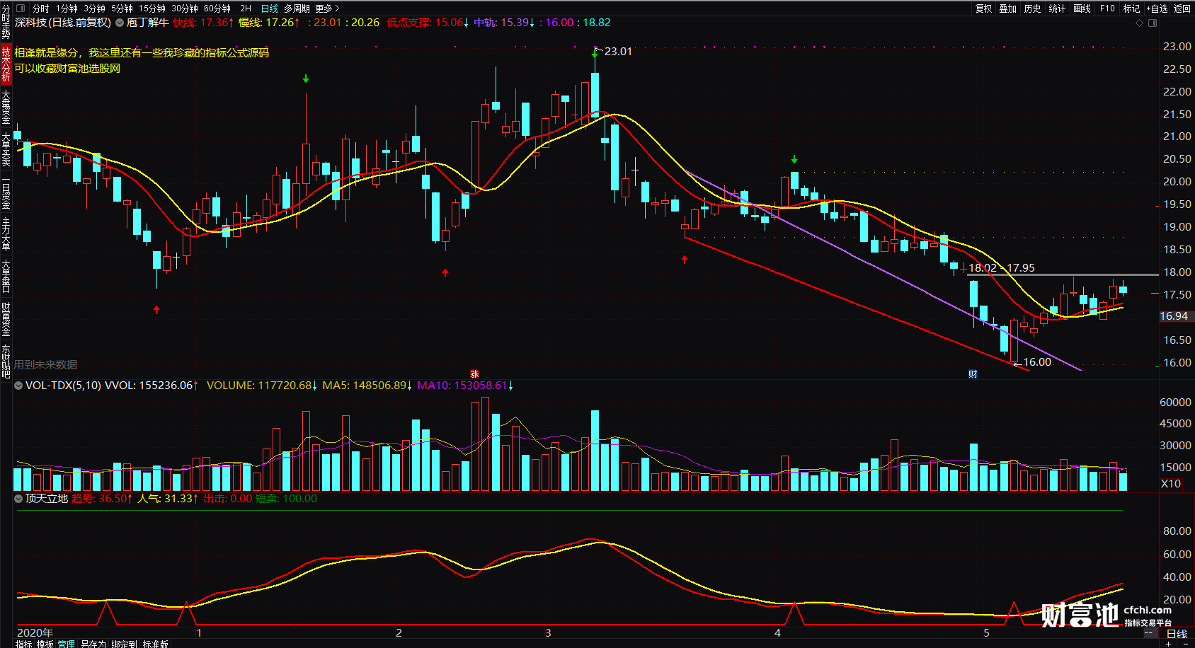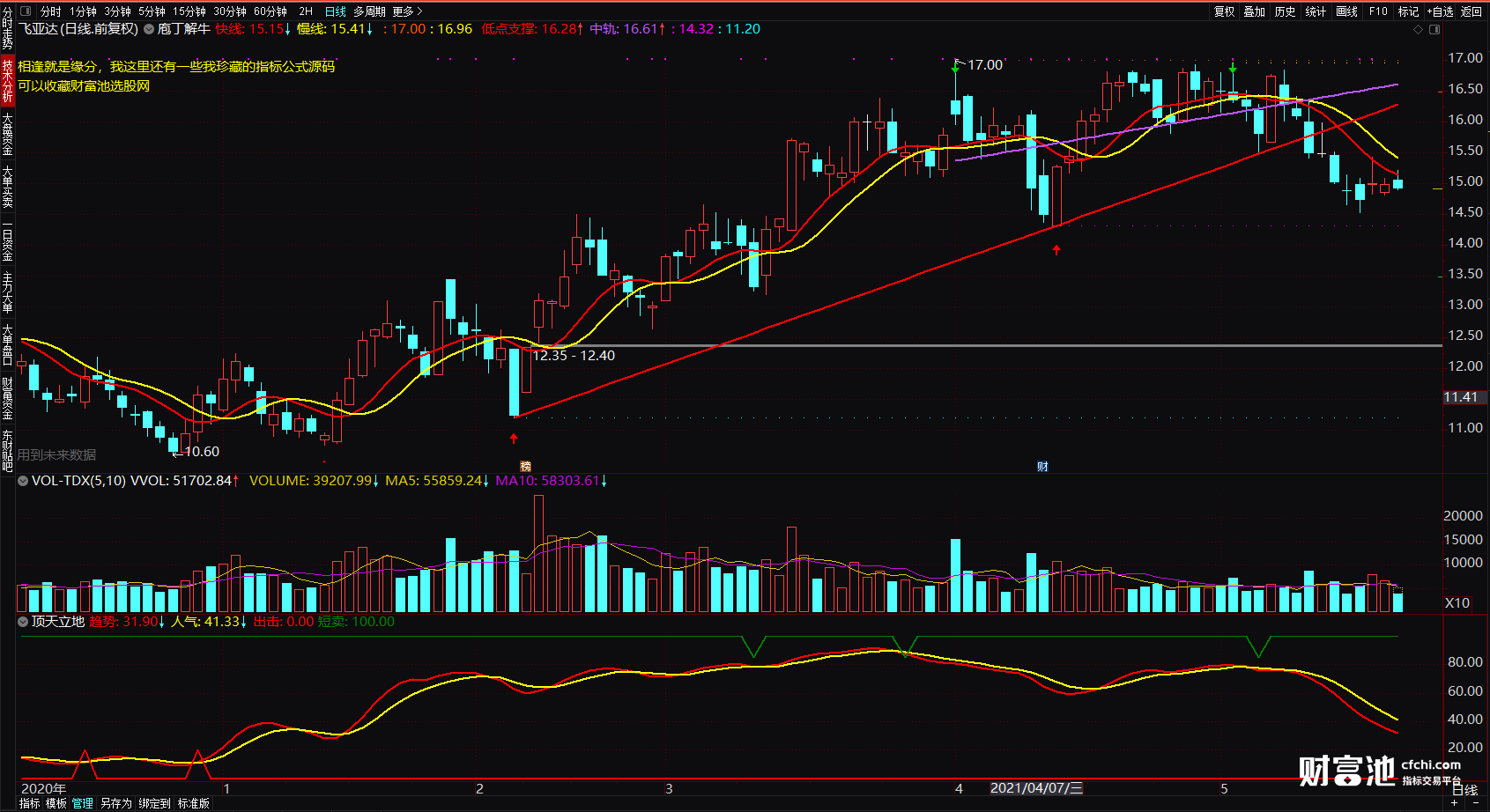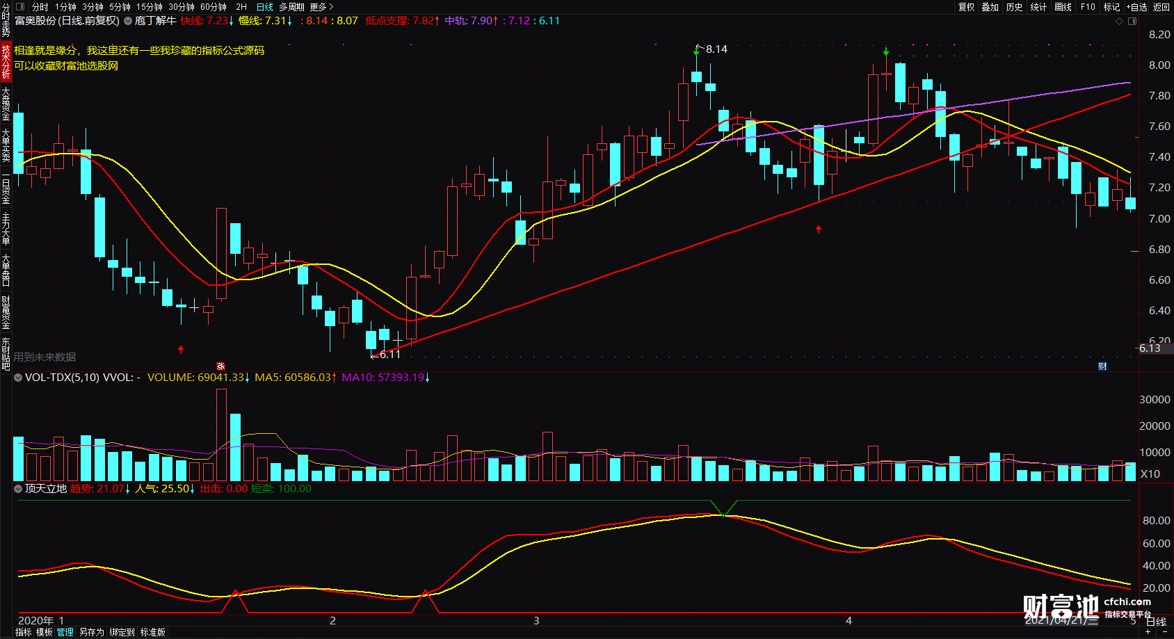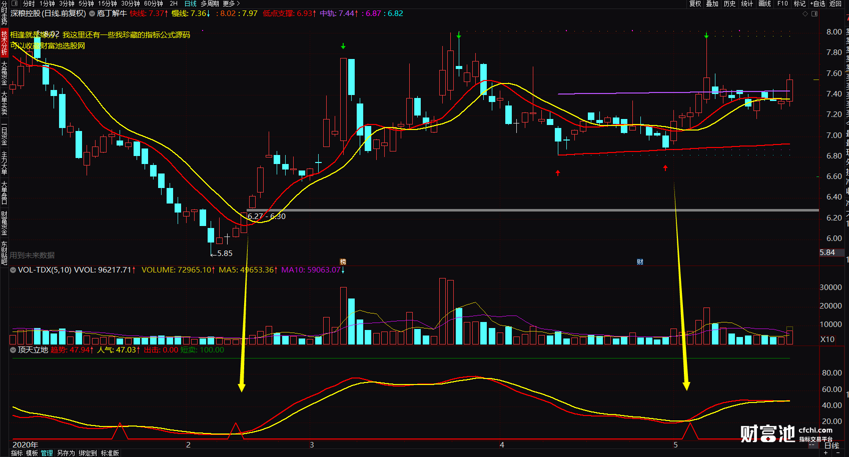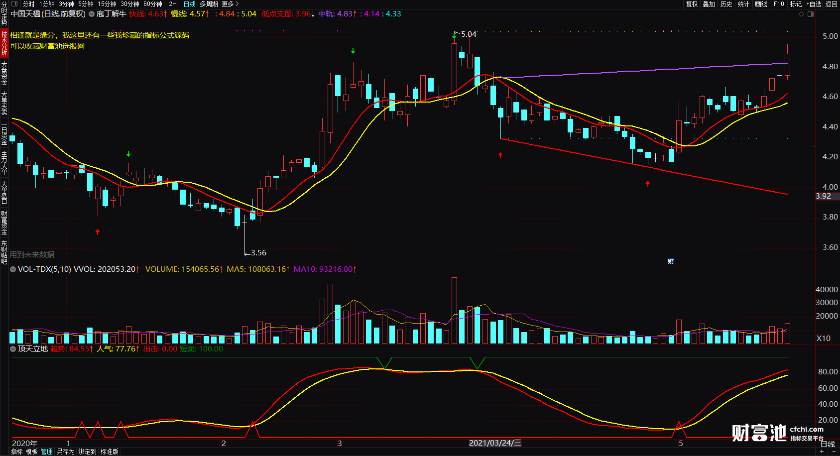 通达信趋势线指标公式 庖丁解牛加顶天立地的结合使用(主图+副图 源码 附图)
