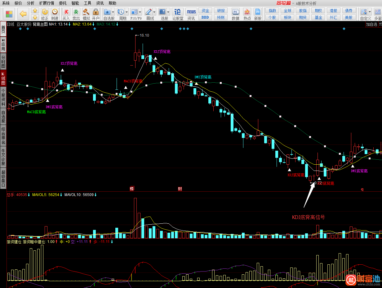 (同花顺背离主图指标公式)