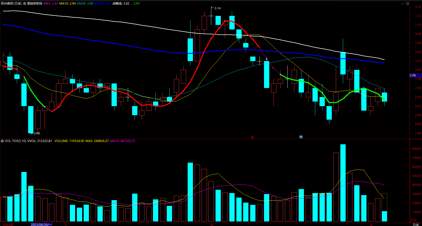 (两条趋势线带你牛转乾坤 多空趋势王变色指标源码 通达信 主图 无未来 源码 )