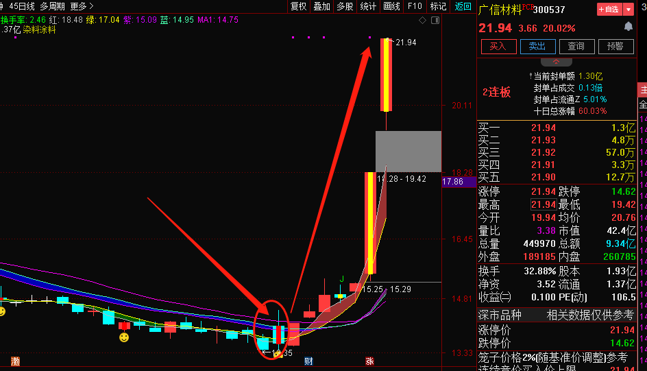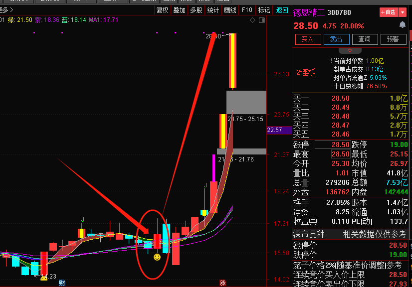 3、止盈可根据自己喜好,五日线减半,十日线清仓,或者按照上面小人信号减仓或者清仓也可。