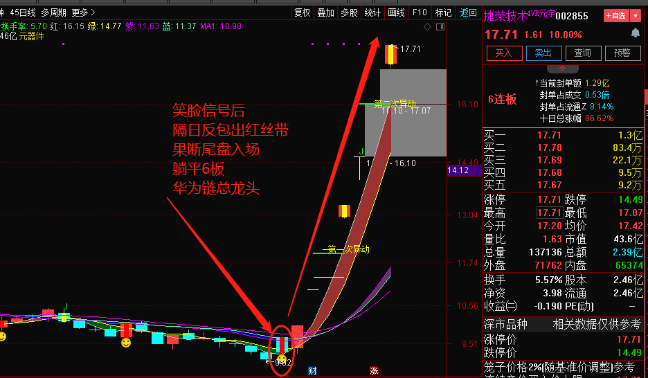 4、配合题材风口,专抓牛股大波段行情,精准捕捉华为链总龙头捷荣技术和创业总龙头华力创通等大牛股大波段行情,爽到你不敢持股。。。