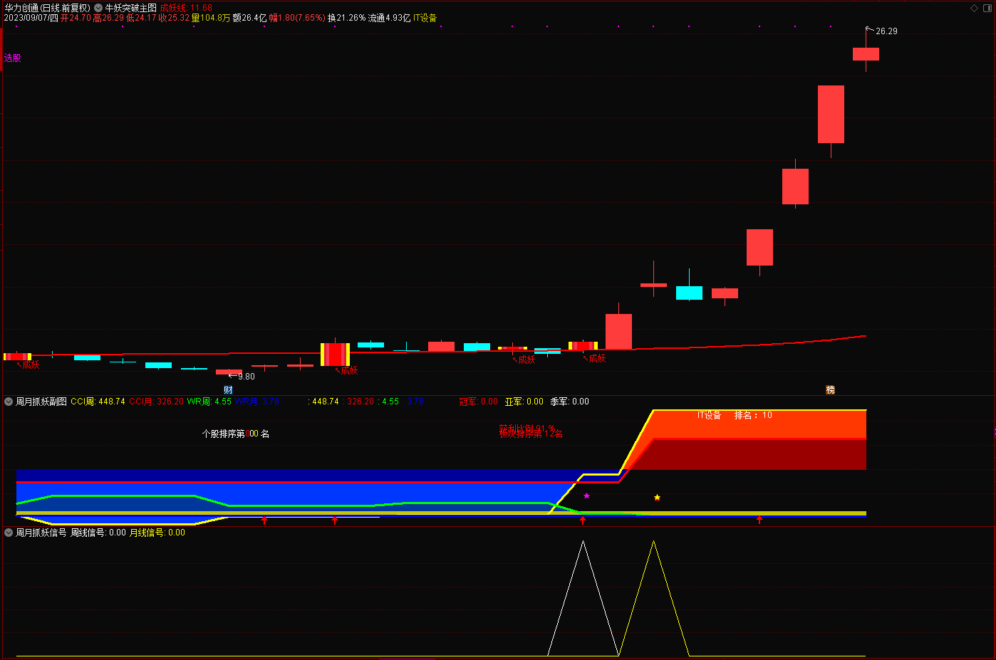 (【牛妖突破】通达信牛妖突破主图+周月抓妖副图选股套装指标,肥牛斩狙杀妖股躺着赚!源码分享)