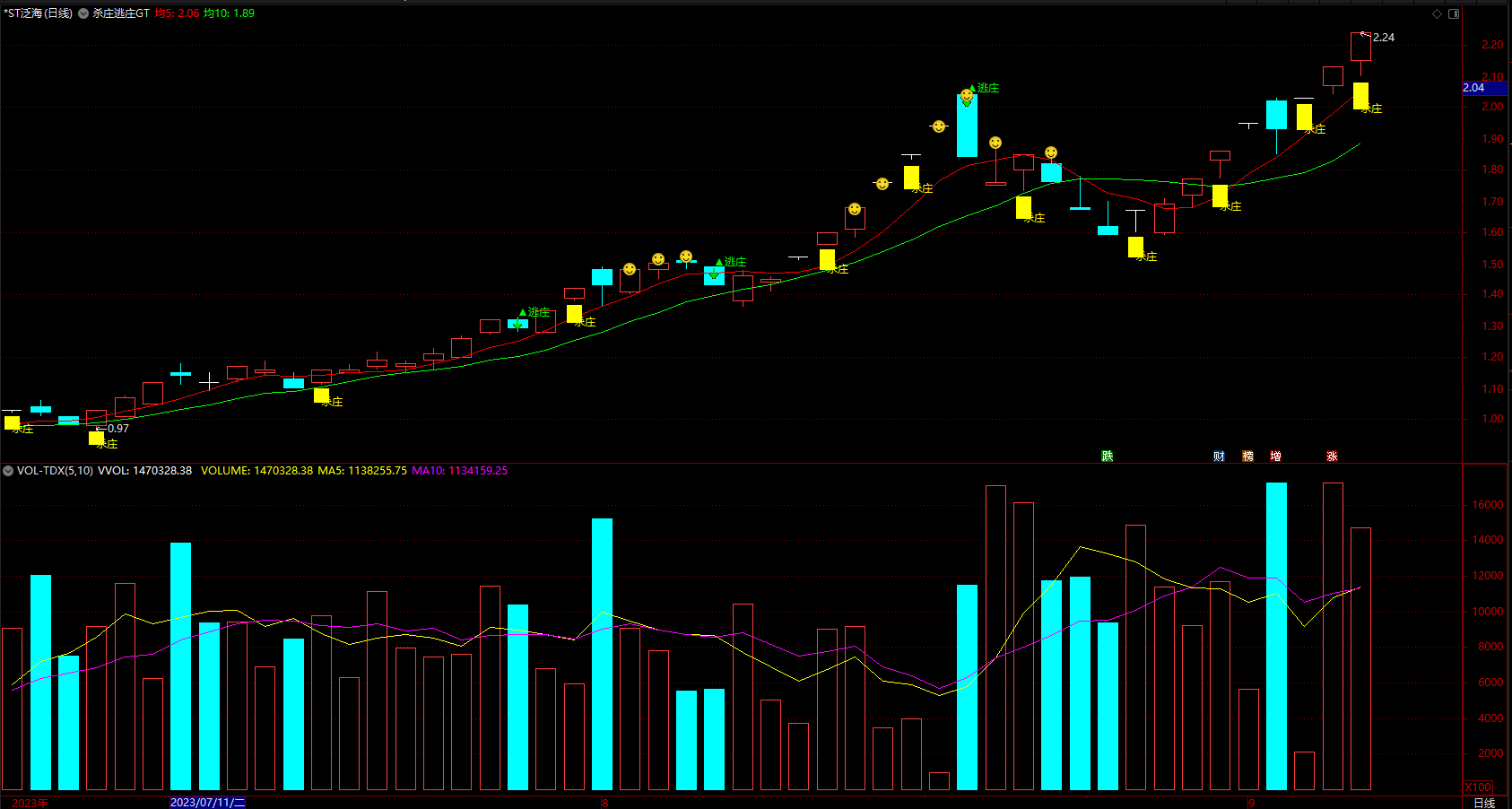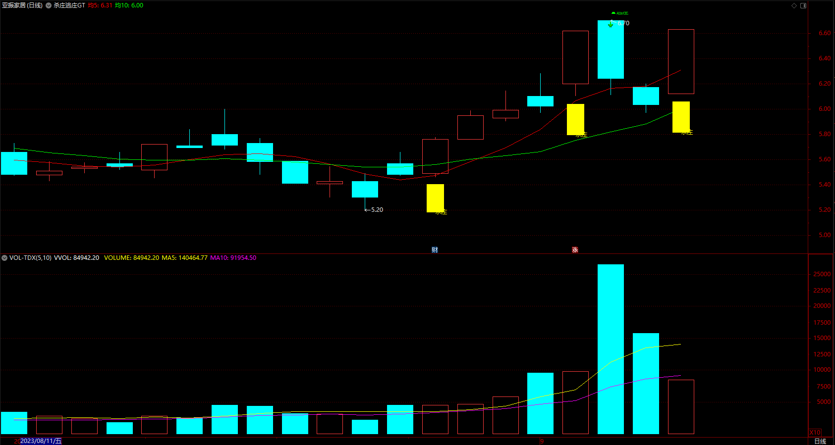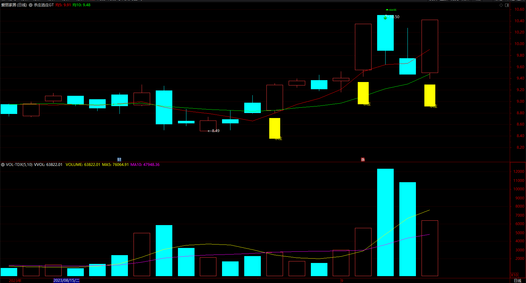 DRAWTEXT(VAR327>90,LOW*0.95,'杀庄'),COLORYELLOW;