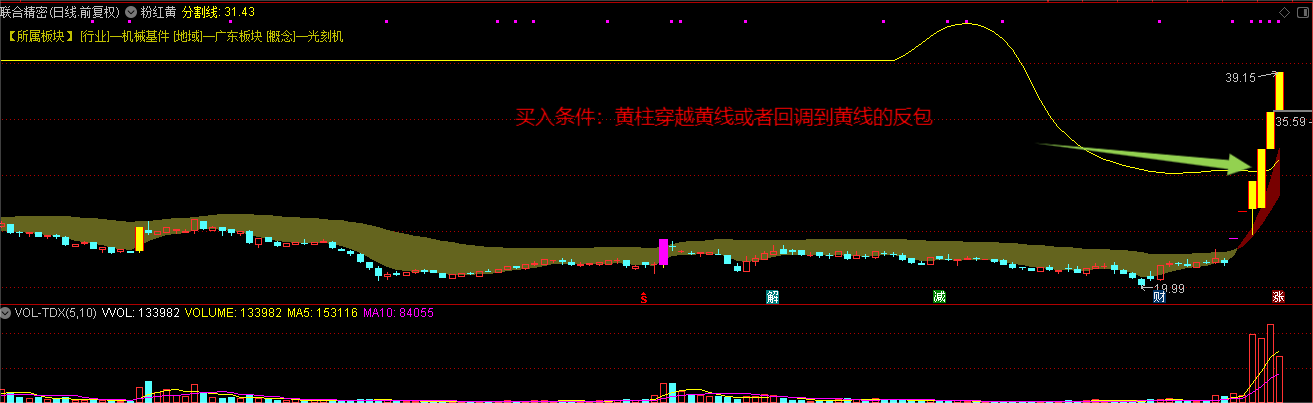 特别提示:此指标不含未来函数,只需观察黄线黄柱所处位置,直观反映出当前个股的市场情绪
