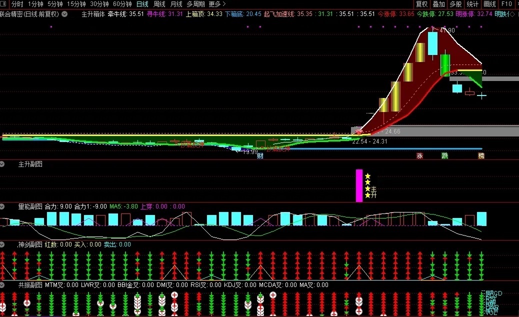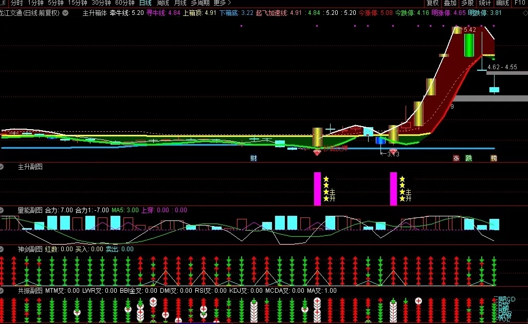 【新版双紫擒龙】副图选股指标强势起爆+双紫擒龙+动能二号+共振追涨 独创三紫一红选股