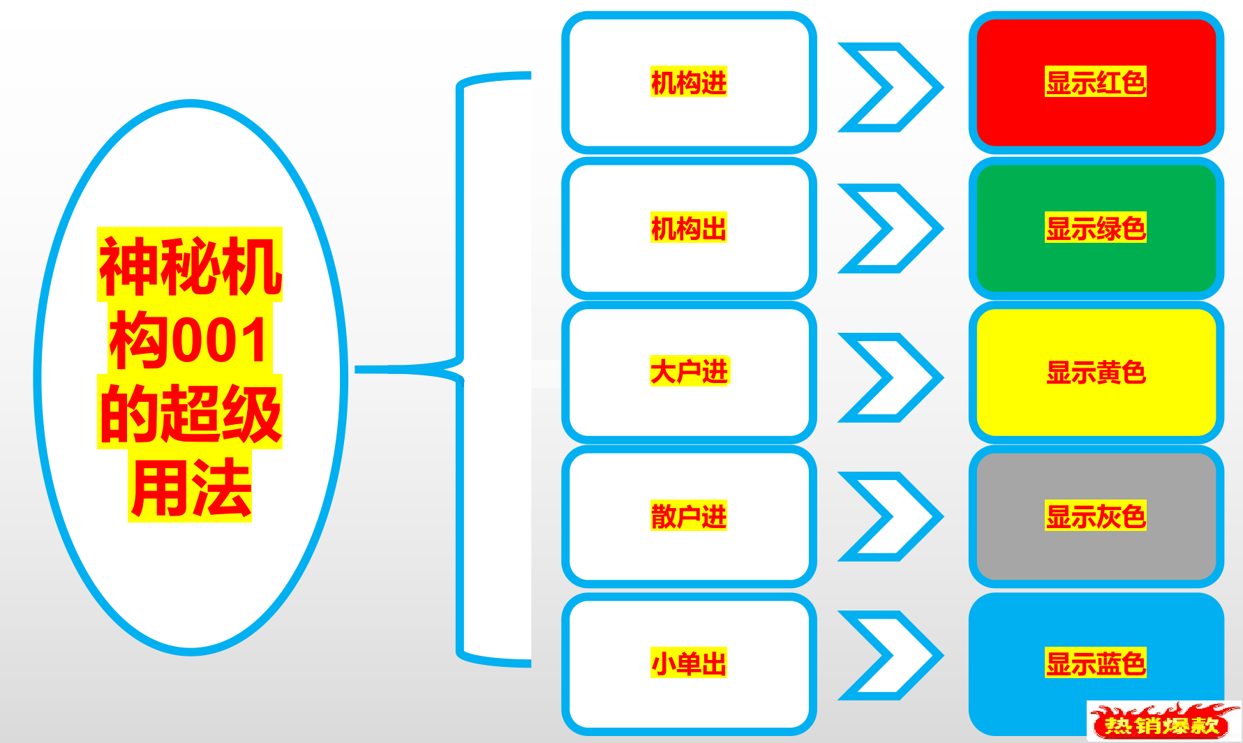 机构是怎么定义的呢?——有席位的都是机构 ● 1、比如北上资金 ● 2、比如社保基金 ● 3、比如保险基金 ● 4、比如养老基金 ● 5、比如公募基金 ● 6、比如私募基金 ● 7、比如年金 ● 8、比如投资机构 ● 9、比如信托等 ● 10、指标监控以单为主,比10:03分有1万手大单,又是有席位的就会显示红色,代表机构入场