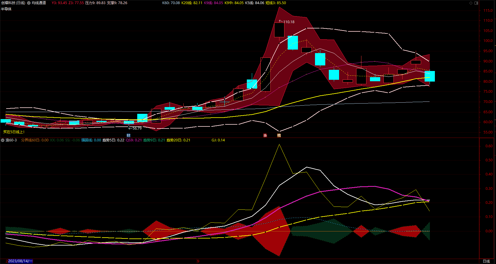 趋势红绿均线加浪60-3主图/副图指标 通达信 无未来 源码