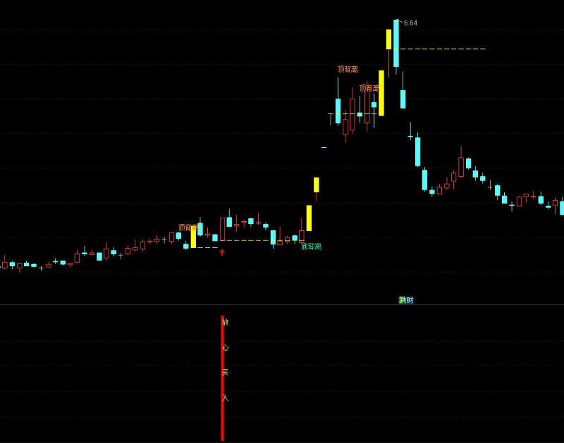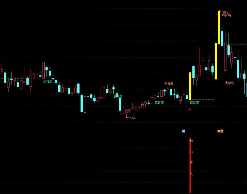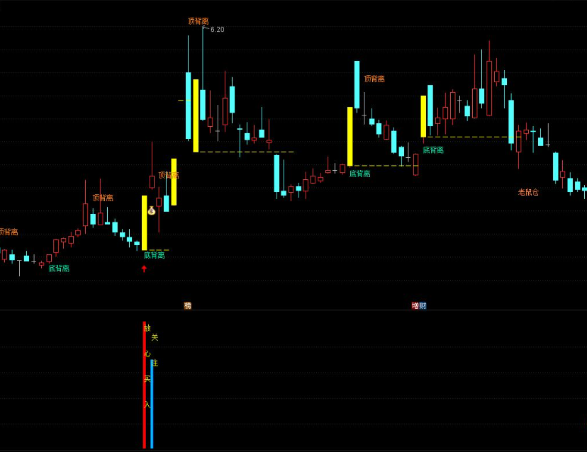 3,可结合主图上的三种信号操作,在黑马神器出信号后,主图也相应出现老鼠仓,底背离,等信号后是持股待涨的信号,{注意事顶的股票除外},此股暂时可以继续持有,放大利润,到10个点以上的利润再考虑止盈。当然具体结合大盘走势。