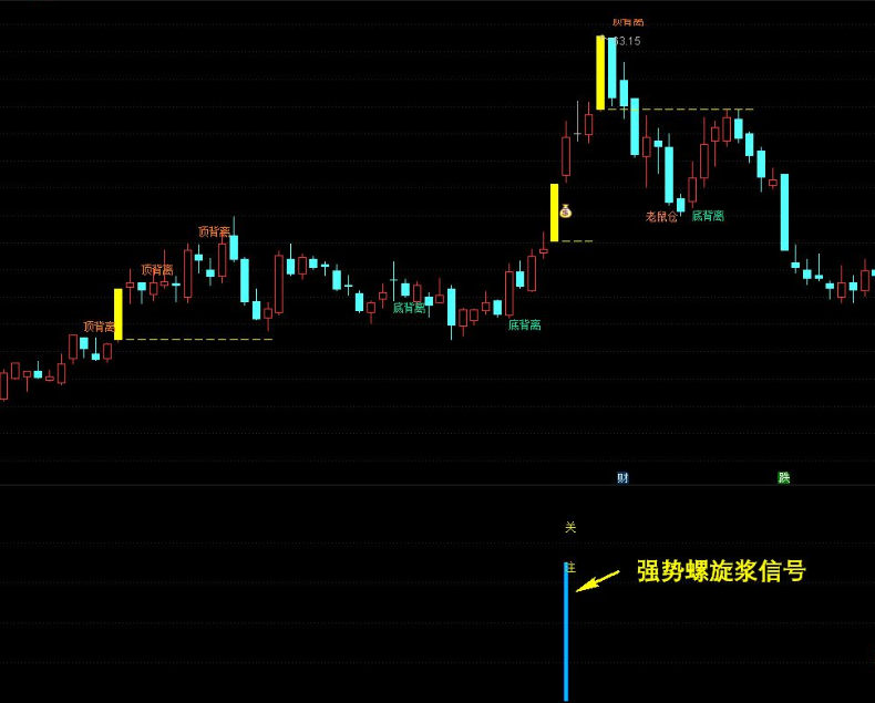 1、先确定出“二分位”,找出中轴线(即最高价与最低价的中点——中间价)。螺旋桨重心在中轴线之上运行,则向上旋,在中轴线之下运行,则向下旋;