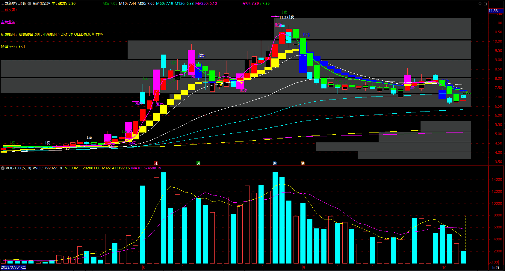 (黄蓝带筹码峰 通达信多空波段操作提示主图公式 源码 )